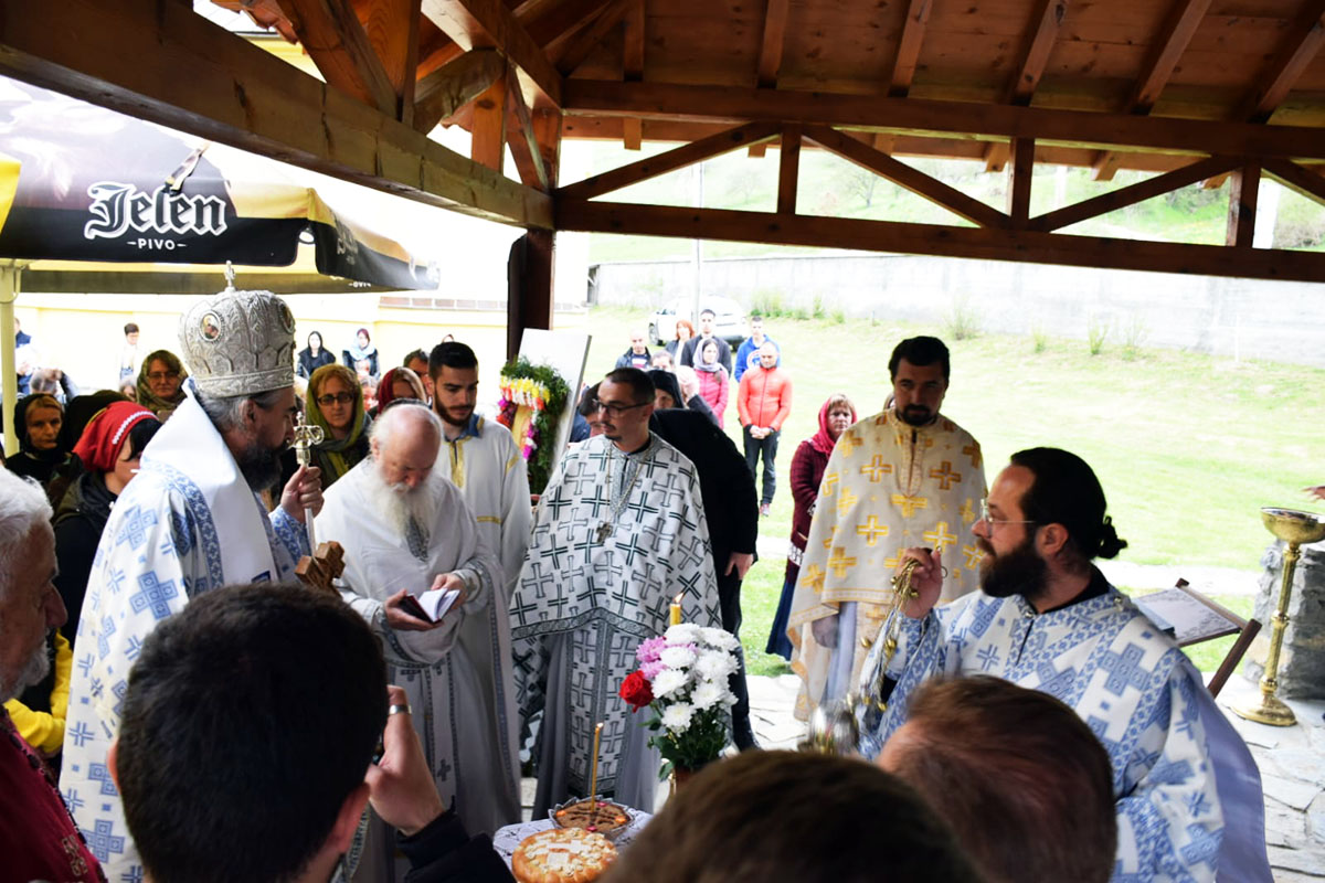 По одслуженој Литургији, коју је појањем пратило Братство Светог Евстатија из Берана, Владика је освештао и преломио славски колач Колу српских сестара Златешке мироносице.