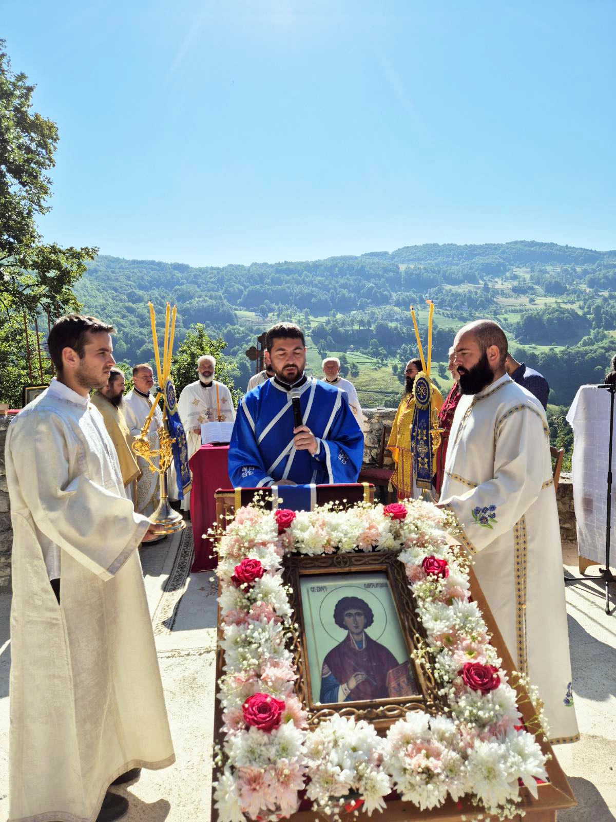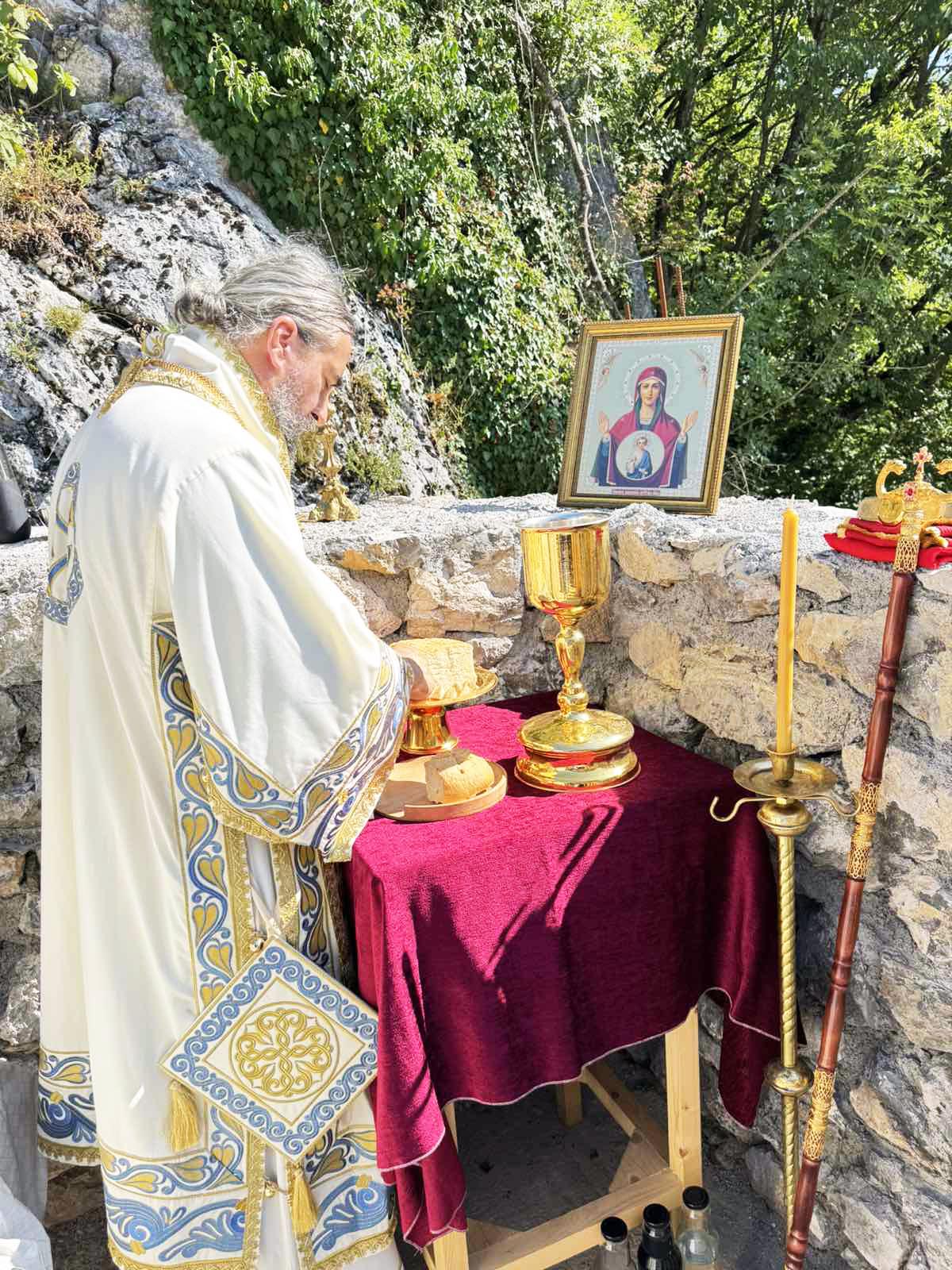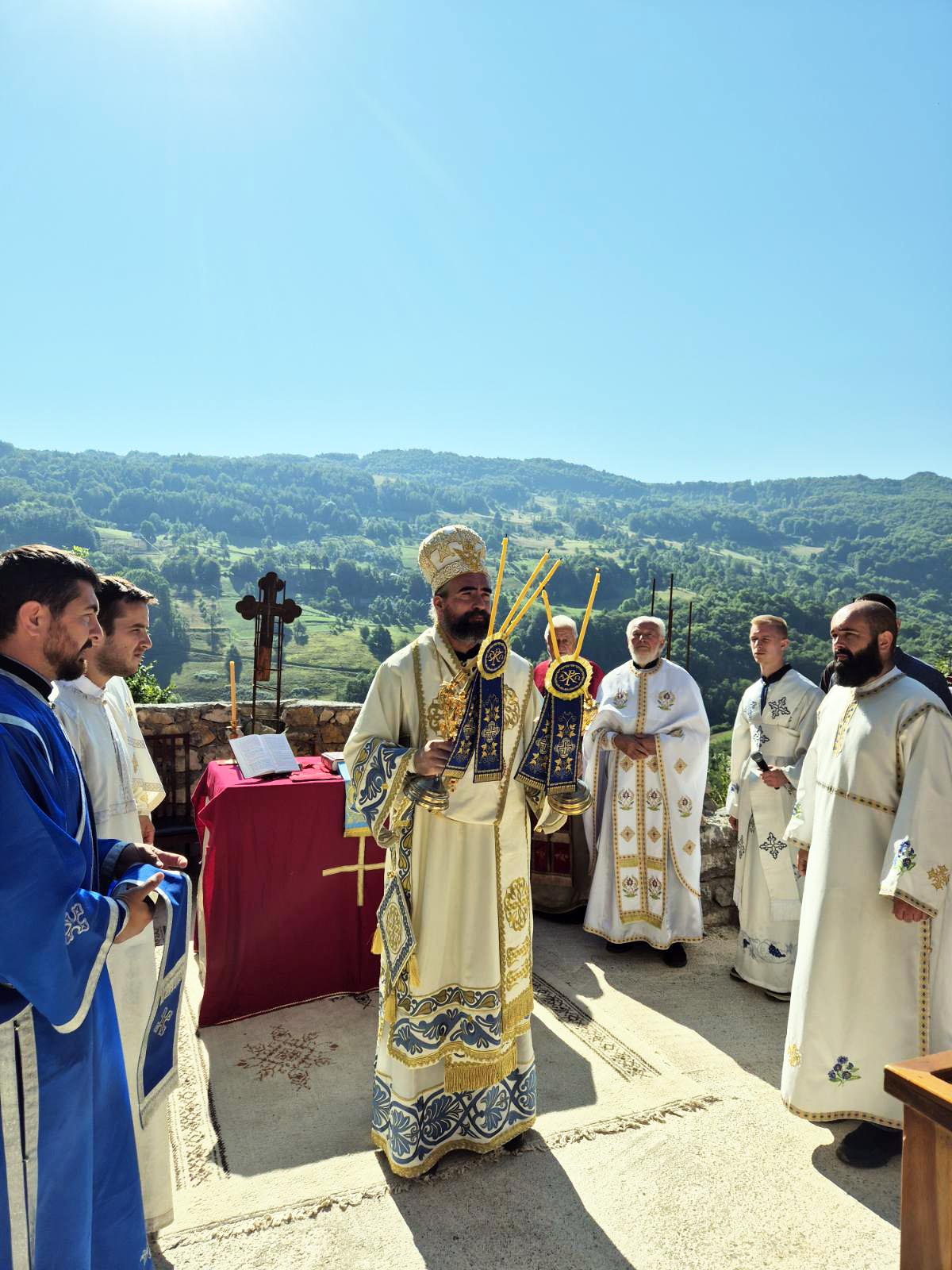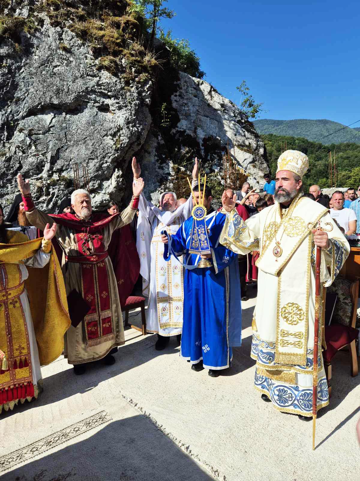 Владика Методије је, честитајући славу свима који су се сабрали, под дивним и ведрим небом Самограда и овог дивног, сунчаног дана.