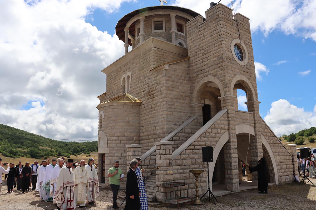 По одслуженој Литургији, литија вјерног народа, предвођена Владикама, свештенством и монаштвом опходила је храмовно здање.