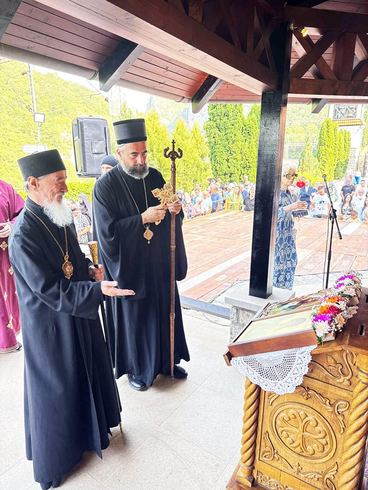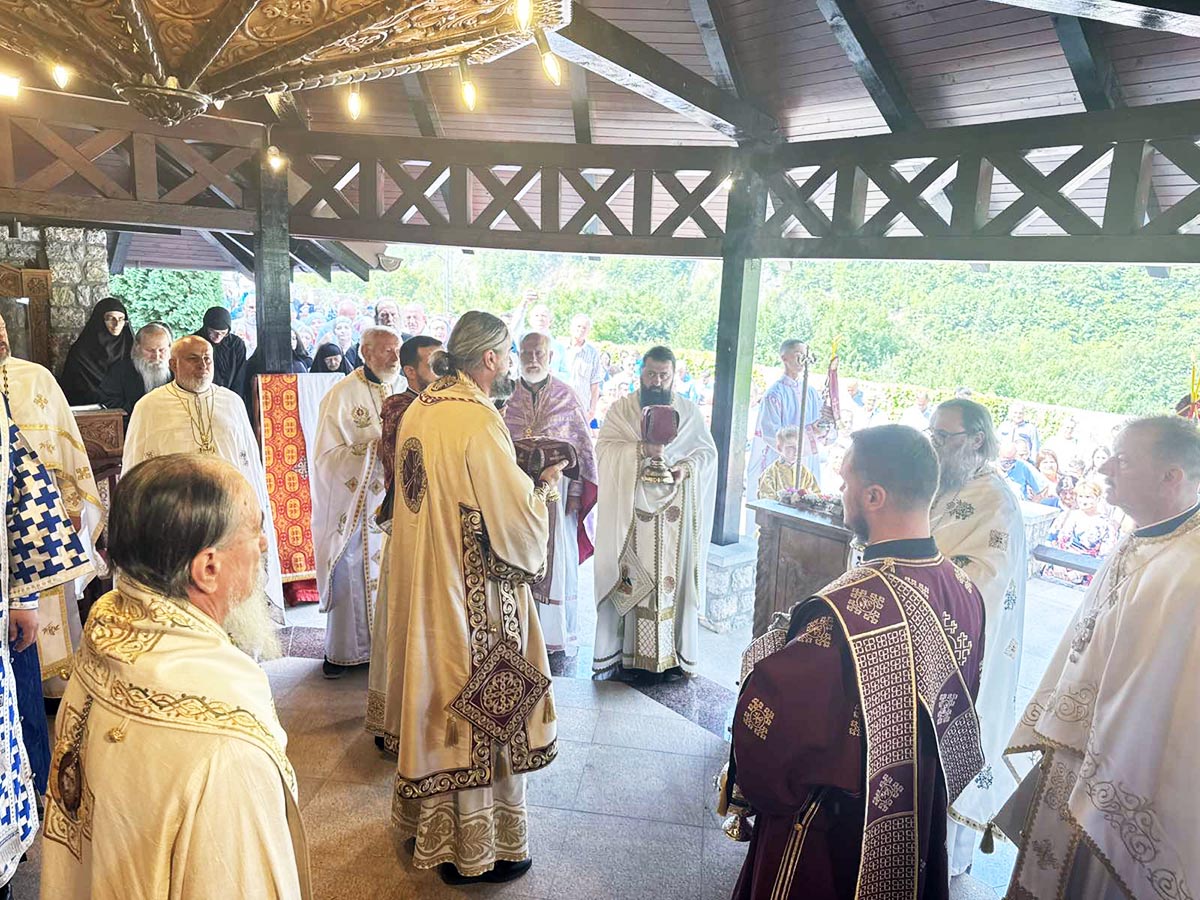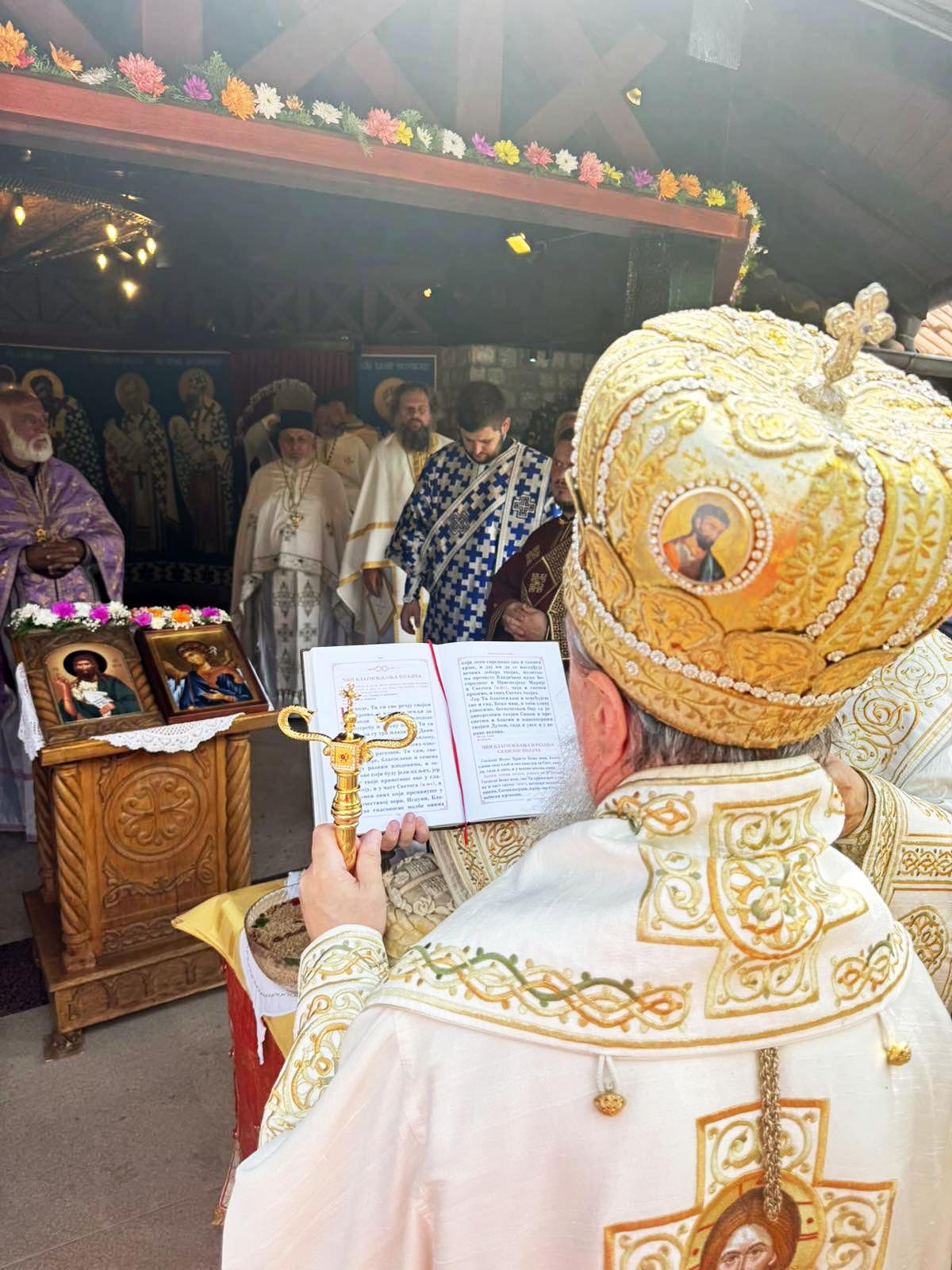 Литургију су служили Њихова Високопреосвештенства Архиепископ и Митрополит милешевски Г. Атанасије и Митрополит будимљанско-никшићки Г. Методије уз саслужење свештенства и монаштва.