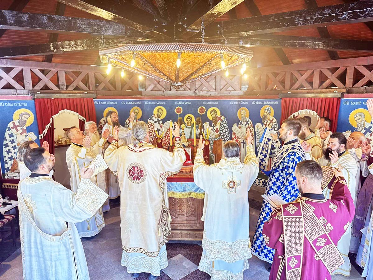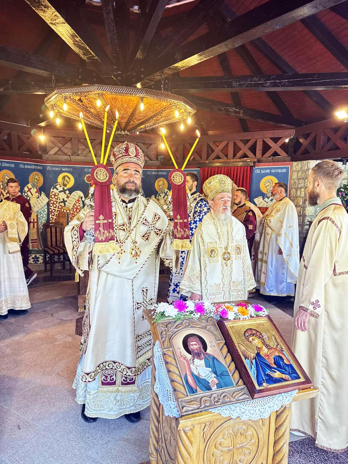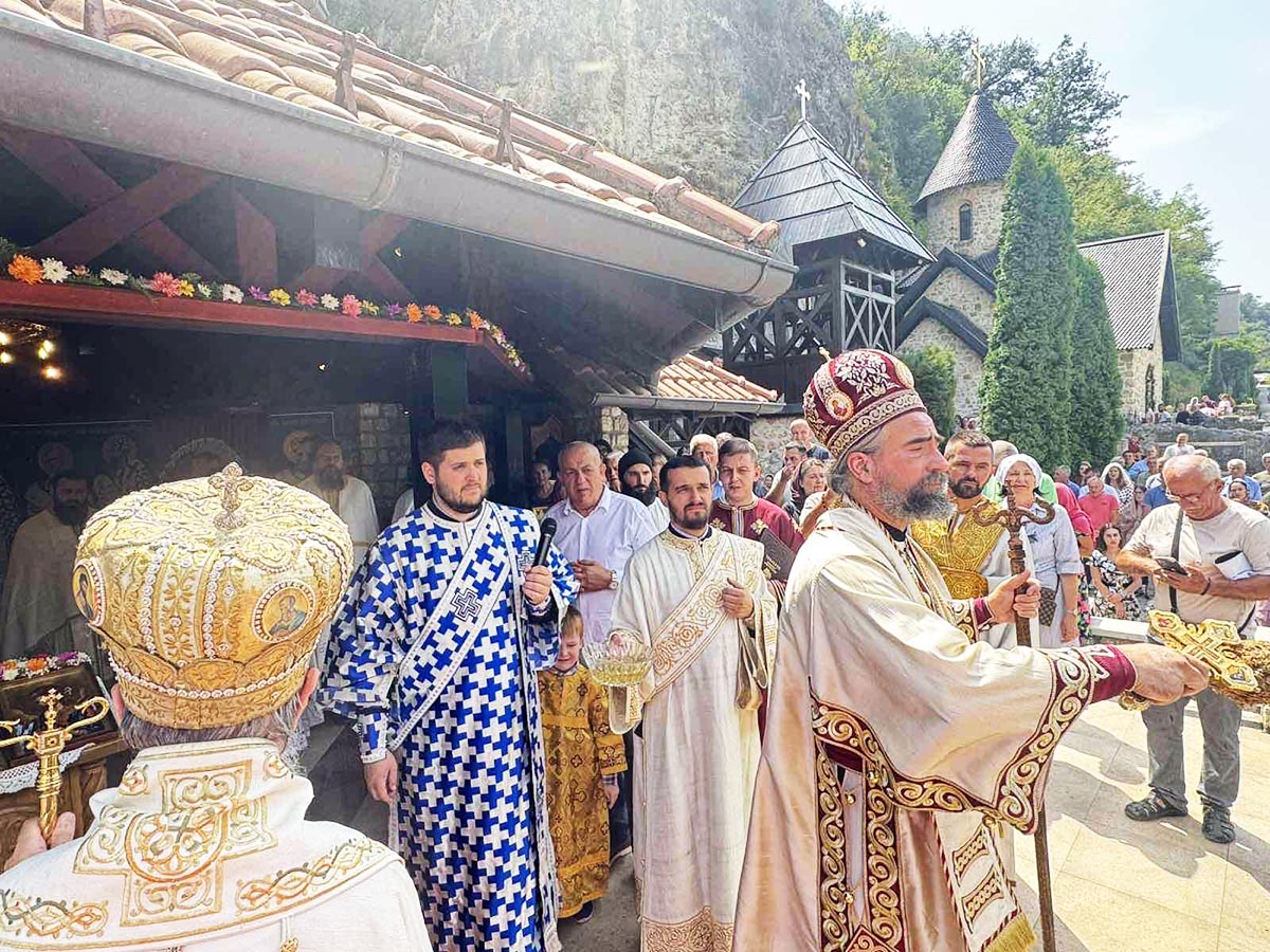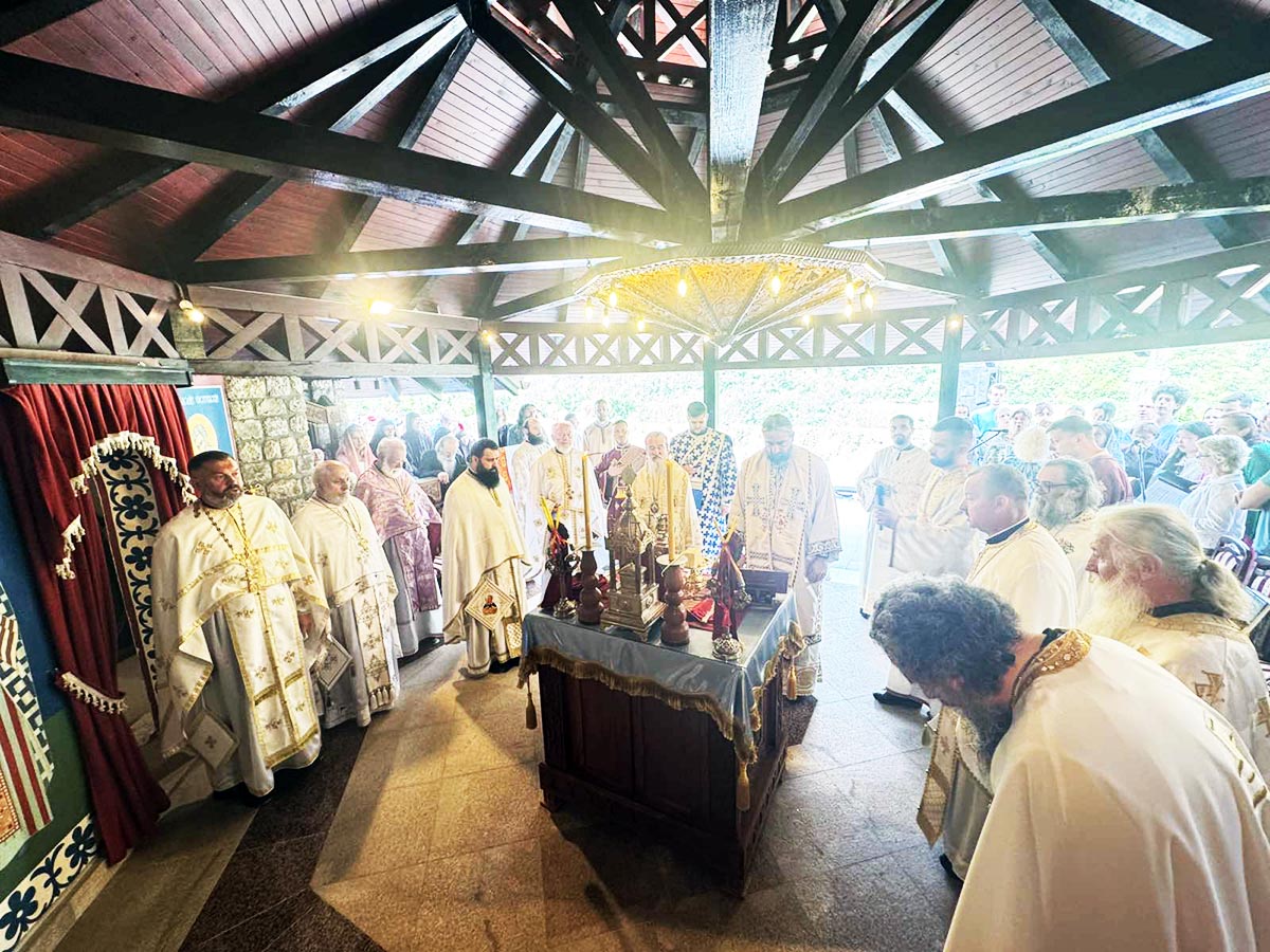 Литургију су служили Њихова Високопреосвештенства Архиепископ и Митрополит милешевски Г. Атанасије и Митрополит будимљанско-никшићки Г. Методије уз саслужење свештенства и монаштва.