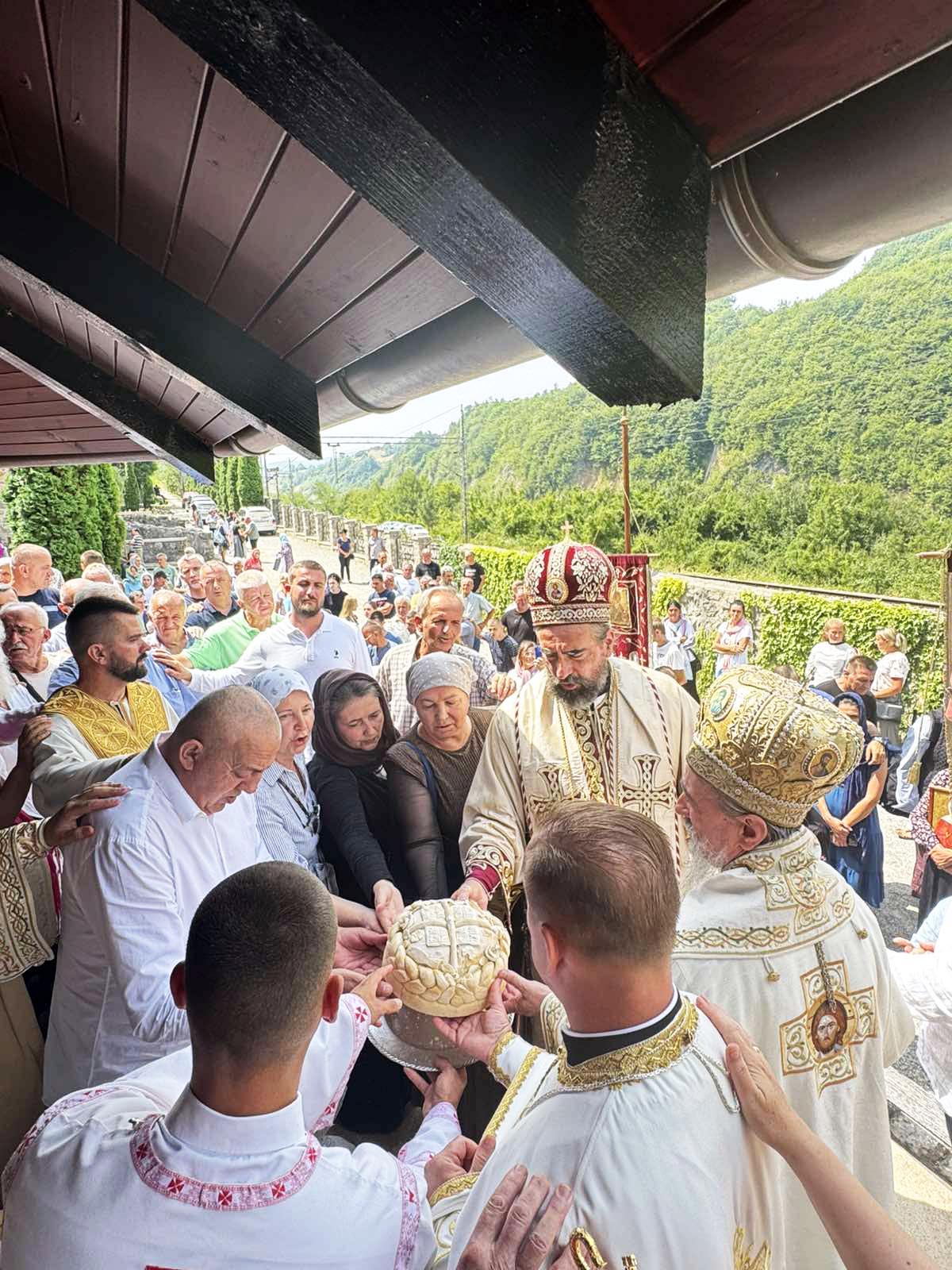 Вјерни народ приступио је и причестио се Светим Тајнама Тијела и Крви Христове. Освештано је славско жито и преломљен славски колач, које је припремило монаштво манастира Куманица.