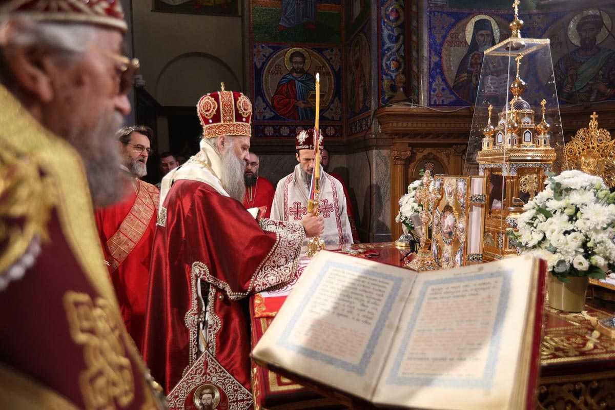 Честитајући верном народу крсну славу, Његова Светост Патријарх г. Порфирије је истакао да га веома радује то што српски народ своју веру сведочи подизањем нових и обновом старих храмова, али пре свега сабирањем светосавског народа у њима.