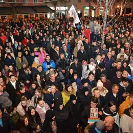 На хиљаде Никшићана поздравило је његове ријечи срдачним аплаузом, кличући: Не дамо светиње!