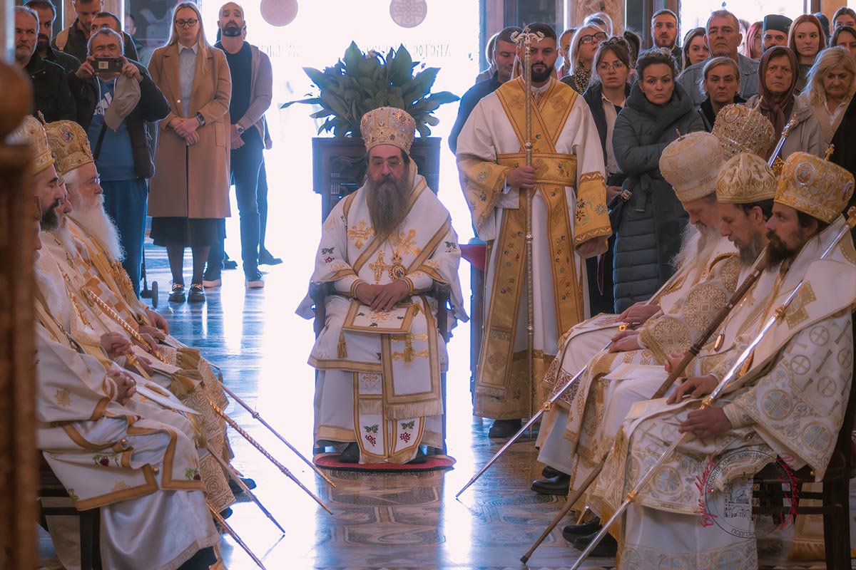 Поводом нашег данашњег сабрања овдје преносим Вашем Високопреосвештенству благослов и најтоплије жеље Светог Синода Цркве Грчке и њеног предсједника Бложењејшег Архиепископа Атинског и цијеле Грчке господина Јеронима који вас братски поздравља. Наше вријеме је тешко, захтијевно, али и са пуно прилика за духовно свједочанство и позива све нас, пастире, Православне цркве да се покажемо као служитељи, ђакони Свете Тајне Евхаристије. Да постанемо сами Христос у сред својега народа, позивајући све на јединство, смирење, стрпљење и љубав. Благи Бог Вас је Виоскопреосвећени удостојио да будете наследник светога претходника, а то се види не само по Вашем дјелу, него и по Вашем топлом гостопримству. Ваше присуство јесте залог будућности Митрополије и побожног народа који Вам је повјерен.