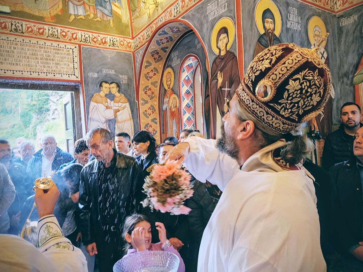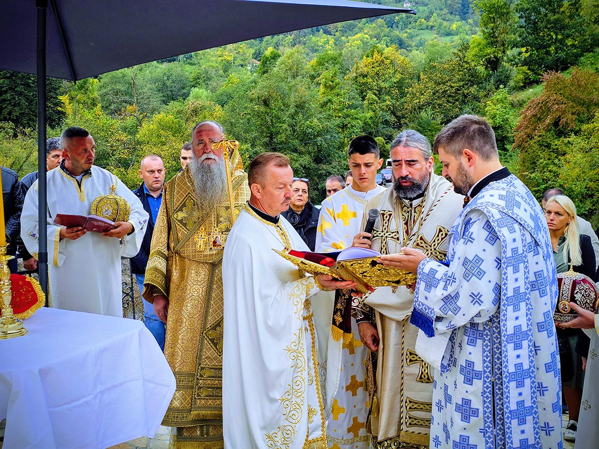 По завршетку Свете Литургије, вјерном народу се обратио и Митрополит Јоаникије, након чега је Митрополит Методије одликовао господина Зорана Ђерковића, ктитора ове светиње највишим одликовањем Епархије будимљанско-никшићке – медаљом Светог великомученика и побједоносца Георгија првог степена.