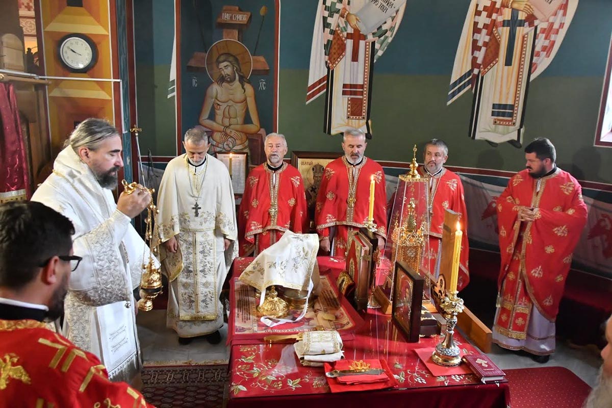 На крају свете литургије Високопреосвећени мтрополит Методије обавио је чин резања славског колача преломивши га са кумом крсне славе храма Господином Владимиром Џајићем из Војковића. Као што налаже традиција, послије резања колача уследила је трократна литија око светог храма.