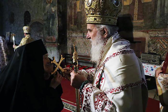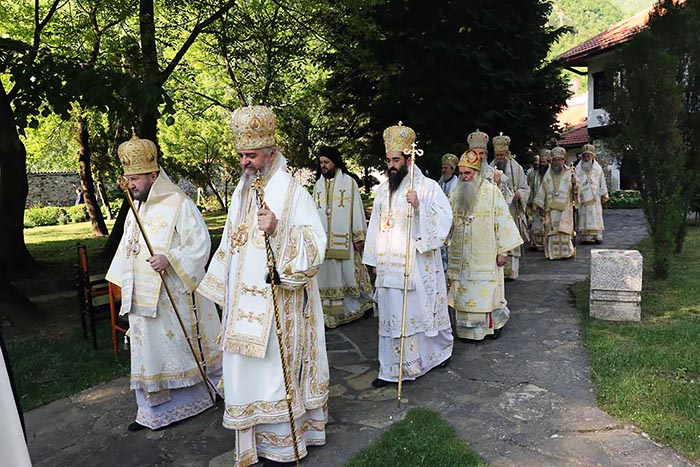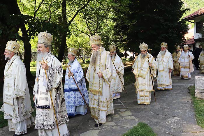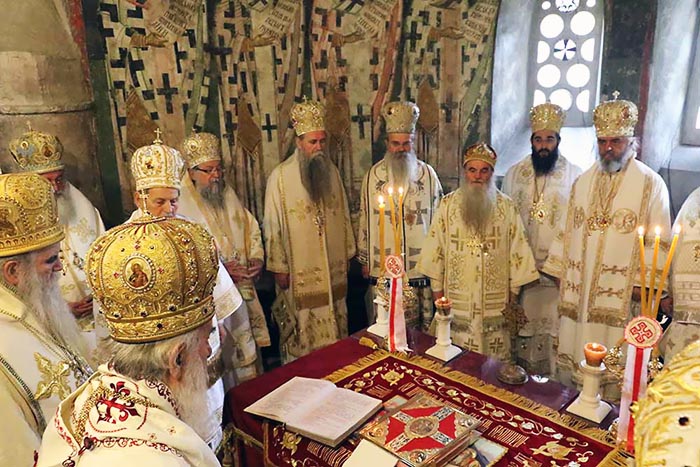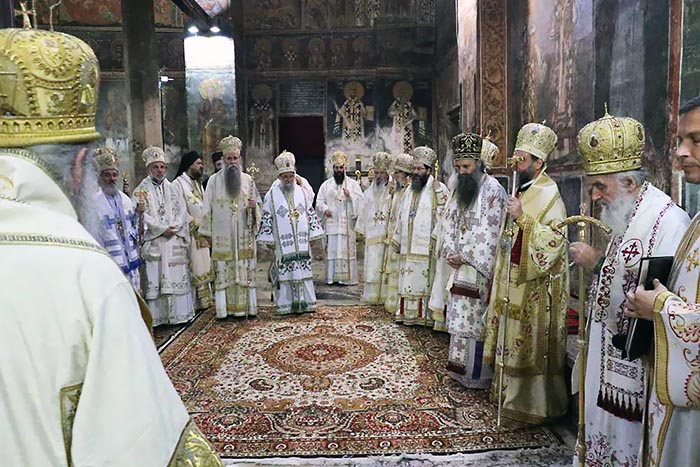Његова Светост Патријарх српски г. Иринеј началствовао је 29. априла 2018. године светом архијерејском Литургијом у Пећкој Патријаршији уз саборно саслужење епископа сабраних поводом почетка редовног заседања Светог Архијерејског Сабора Српске Православне Цркве.