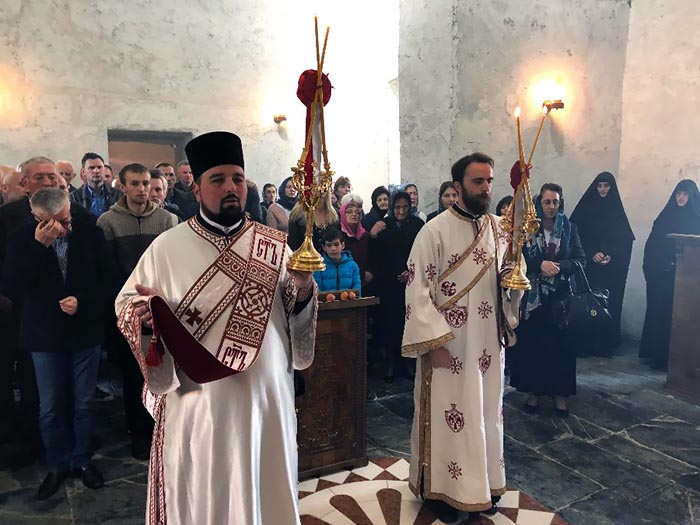 Након причешћа вјерних, на крају богослужења Владика Јоаникије је рекао да је Господ својом смрћу и својим васкрсењем обновио људску природу.