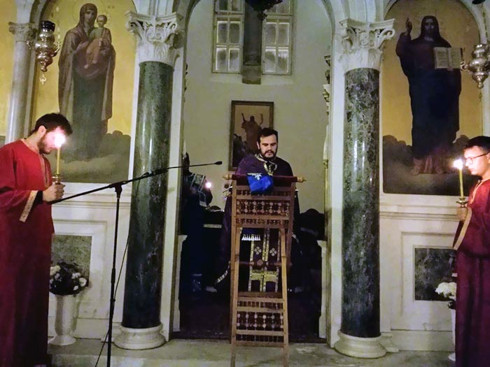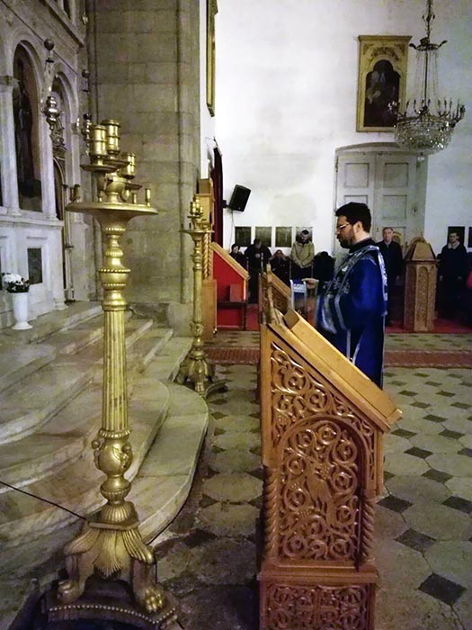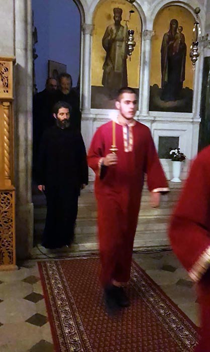На Велики четвртак, 5. априла 2018, јутарње Великог петка служено је у Саборном храму Светог Василија Острошког у Никшићу.