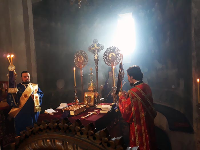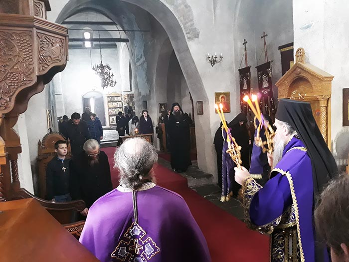 Његово Преосвештенство Епископ будимљанско-никшићки Г. Јоаникије служио је на Велику сриједу, 4. априла 2018, Свету Литургију Пређеосвећених Дарова у манастиру Ђурђеви Ступови.