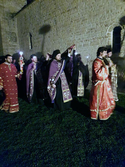 На Велики петак, 6. априла 2018, у присуству Његовог Преосвештенства Епископа будимљанско-никшићког Г. Јоаникија, у манастиру Ђурђеви Ступови, свештенство и монаштво Епархије будимљанско-никшићке су служили вечерње богослужење са изношењем плаштанице.