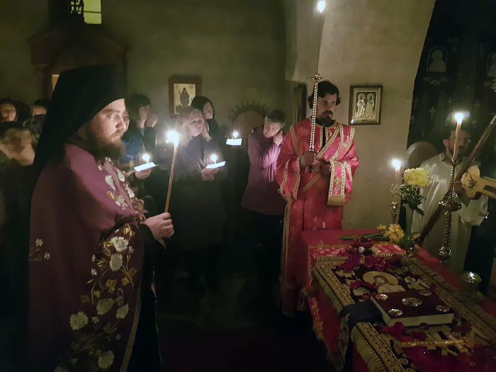 „Налазећи се пред плаштаницом Христовом, пред отвореним гробом Христовим, ми својим духовним очима гледамо на Христово страдање на Крсту, гледамо на Његову животворну смрт, спремамо се да видимо и само погребење Христово, које је Господ примио ради нас људи и ради нашег спасења. Гледамо Христова страдања, али треба да разумијемо и да осјетимо да су Његова страдања добровољна, да их није ничим заслужио, него да их прихвата ради нас и ради нашег спасења, с тим што смо ми та страдања заслужили, а Он их прихвата с нама, за нас и умјесто нас“, рекао је Владика.