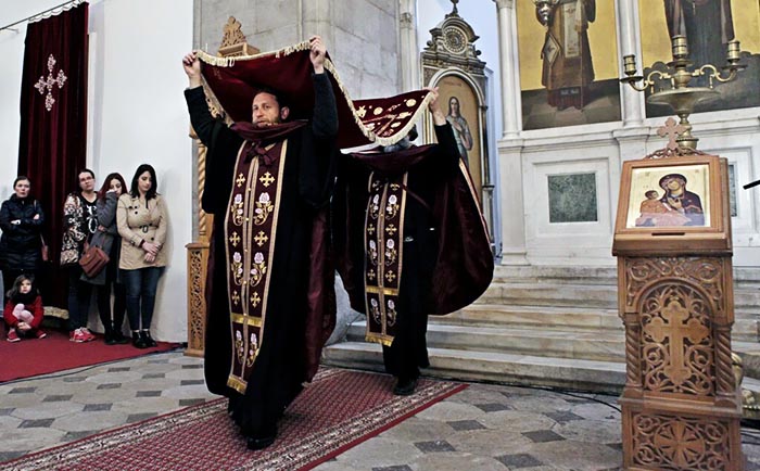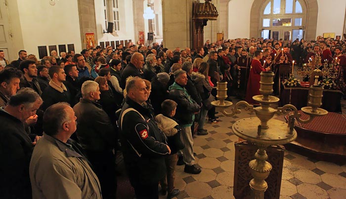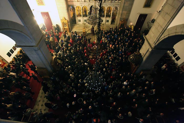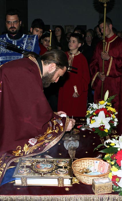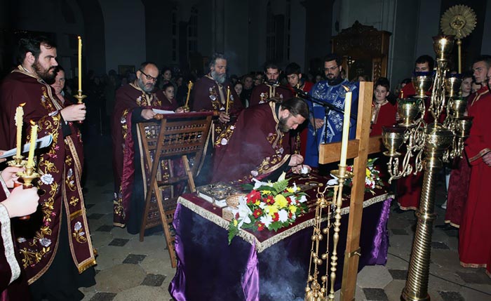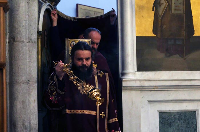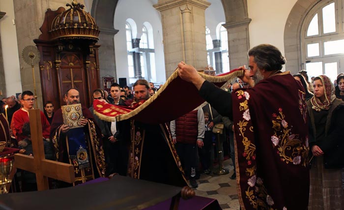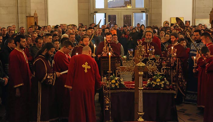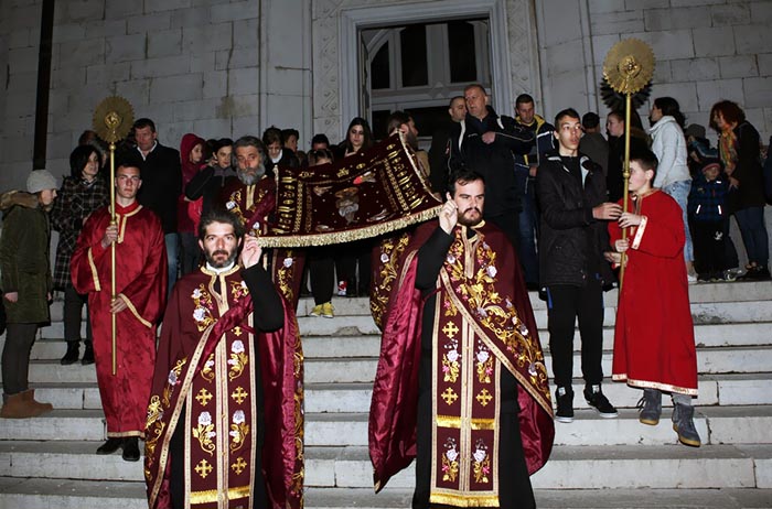 На Велики петак, 6. априла 2018, у Саборном храму Светог Василија Острошког свештеници Саборног храма служили су вечерње богослужење са изношењем плаштанице.