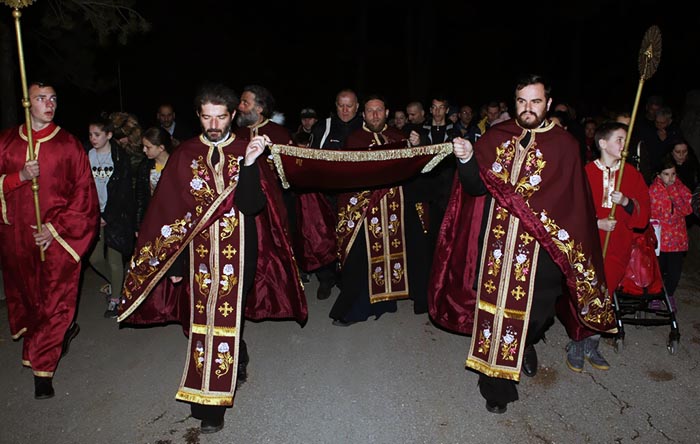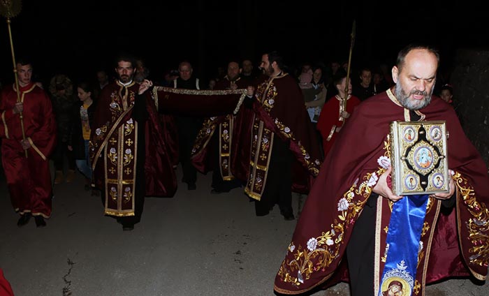 Након вечерње службе служено је јутрење Велике суботе са Статијама, након чега је око храма вршена Литија са плаштаницом.