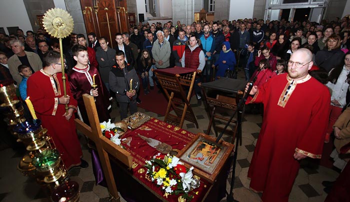 У присуству великог броја народа изнијета је плаштаница, коју су цјеливали свештенство и окупљени вјерни народ.