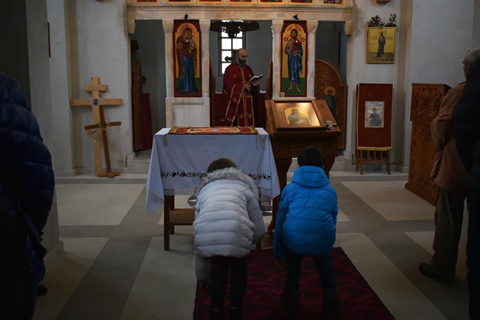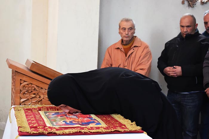 У току службе изнијета је плаштаница, коју су цјеливали свештенство и окупљени вјерни народ.