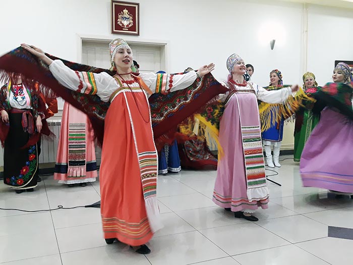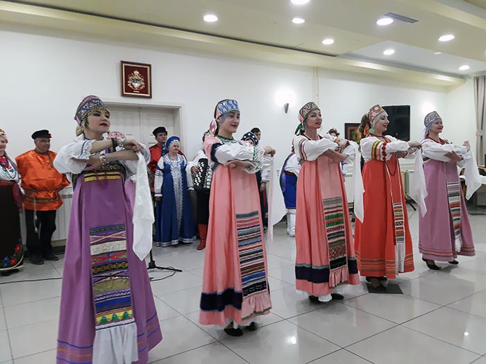 У првом дијелу фолклорне и музичке вечери чланови ансамбла „Родник“ из Москве представили су фолклорно наслеђе Русије, а у наставку су наступили са пјесмама и играма из Украјине.