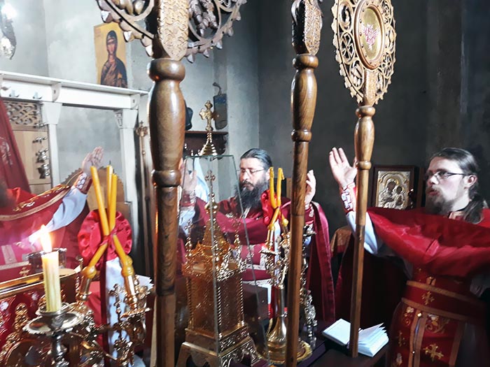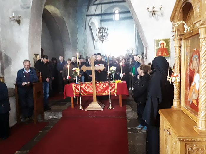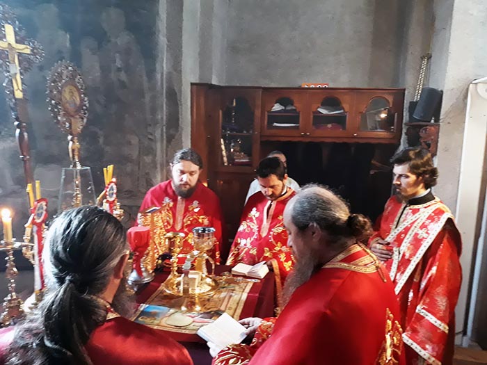 На дан када наша Света Црква молитвено прославља Велику суботу и Благовијести Пресвете Богородице, 7. априла 2018, у манастиру Ђурђеви Ступови служена је Литургија Светог Василија Великог.