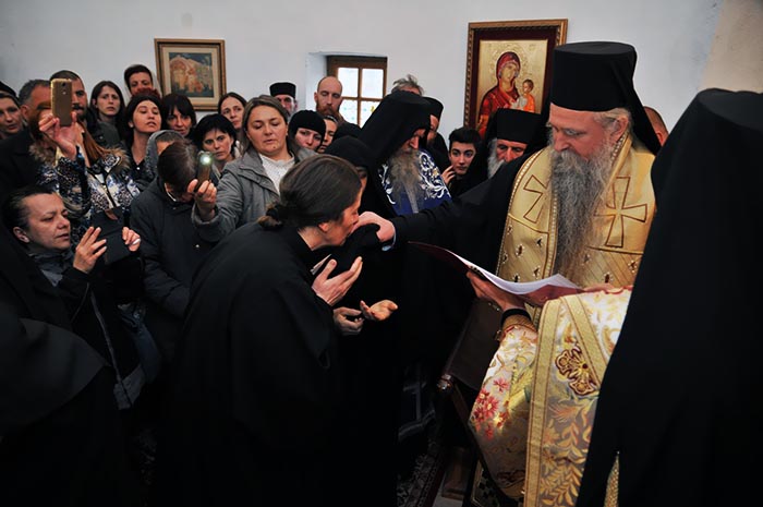 „Монашки завјет јесте обнављање благодати крштења, јер свлачење старог човјека и облачење новог није нешто тренутно, ни механичко. Господ нам је дао силу и благодат на светом крштењу да се обучемо у новог човјека, да се обучемо у свјетлост, у Христа, али за нас хришћане то зависи од наше воље. Оно што смо примили треба да сачувамо, а да бисмо сачували треба и да се потрудимо. Свући старог човјека значи одрећи се старих, лоших навика, везаности за свијет, одрећи се од свјетског размишљања, сујете, од „пусте обмане овог живота и свијета“, одрећи се свега што нас поробљује и понижава као људе Божје, што помрачује лик Божји у нама“, казао је Његово Преосвештенство, додајући: