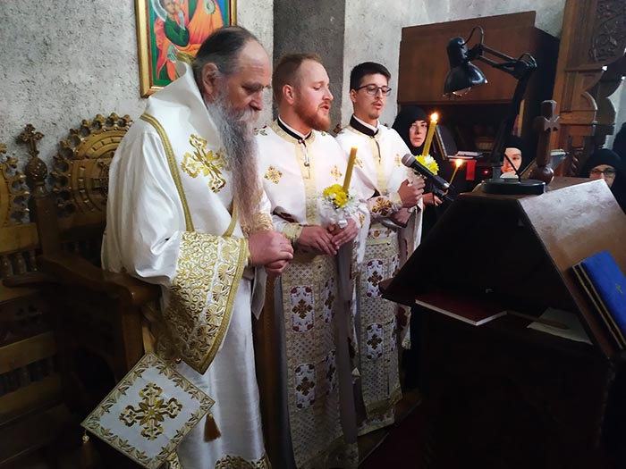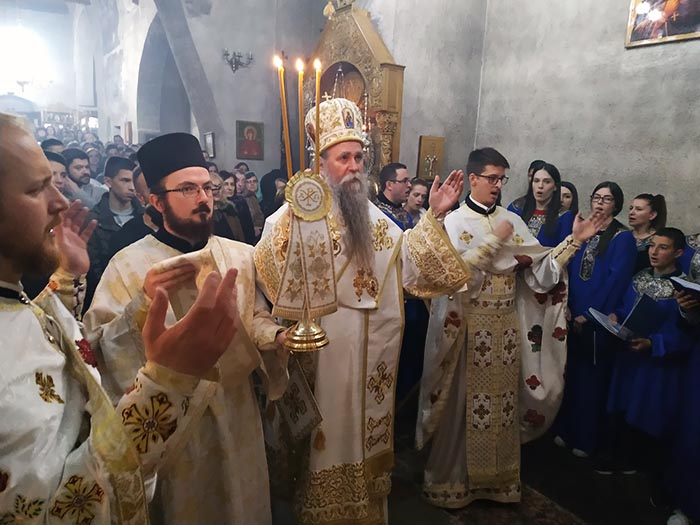 Прослављање Васкрса почело је јутрењем, а у наставку је служена Васкршња поноћна Литургија, којом је началствовао Његово Преосвештенство Епископ будимљанско-никшићки Г. Јоаникије уз саслужење свештенства беранског намјесништва и монаштва Манастира и молитвено учешће вјерног народа.