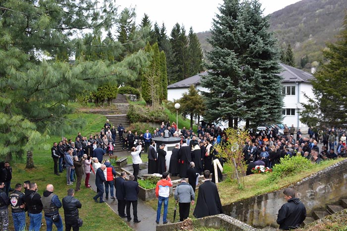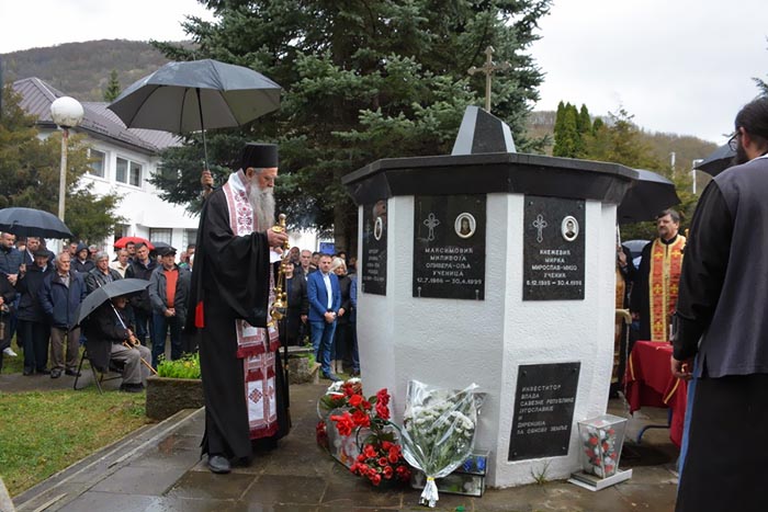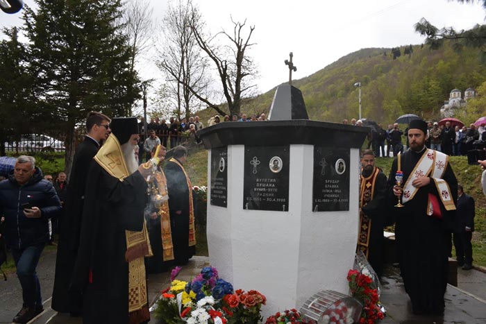 „То свједочи и ово свето мјесто гдје је извршен један од најновијих злочина над Црквом и дјецом Божијом. Овдје су пострадали Мирослав, Јулијана и Оливера, Манојло и Милка од савремених натопактовских нацифашиста. “
