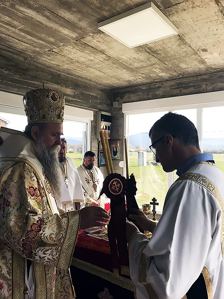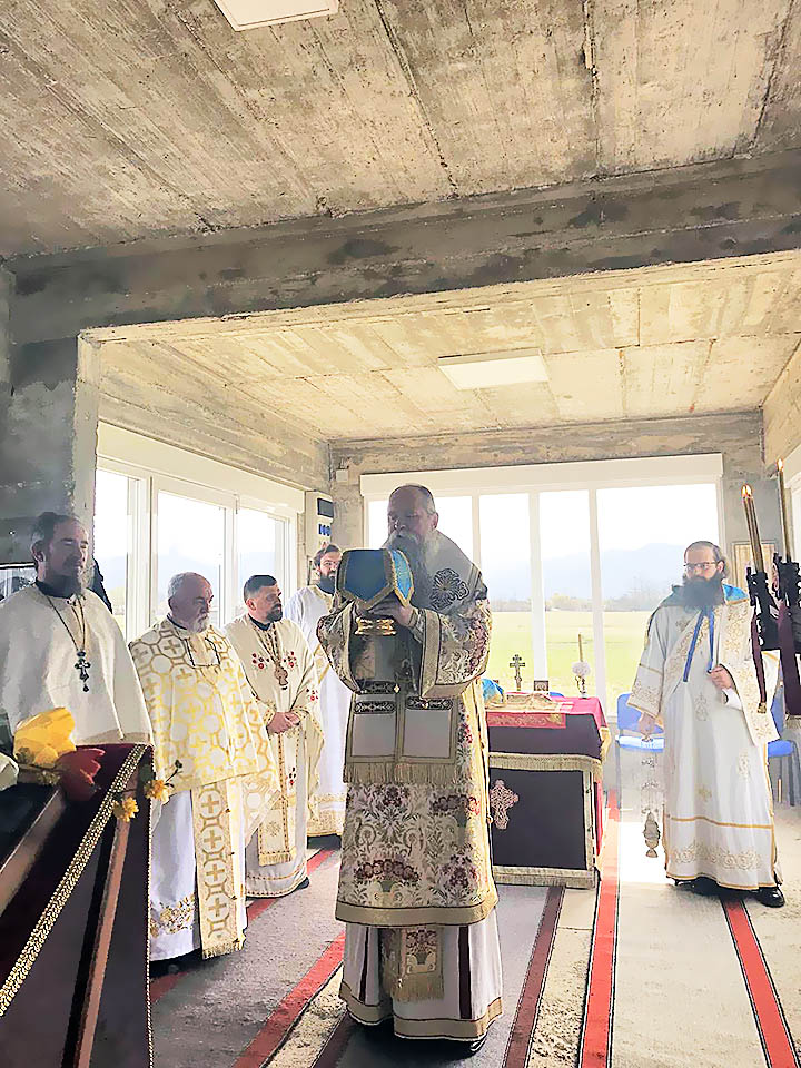 На Лазареву суботу, 24. априла 2021. у храму Пресвете Богородице Тројеручице, који се гради у приградском насељу Кличево у Никшићу, служена је Света Архијерејска Литургија.