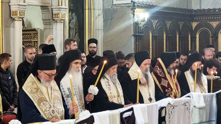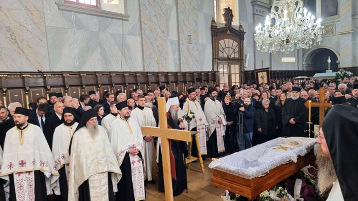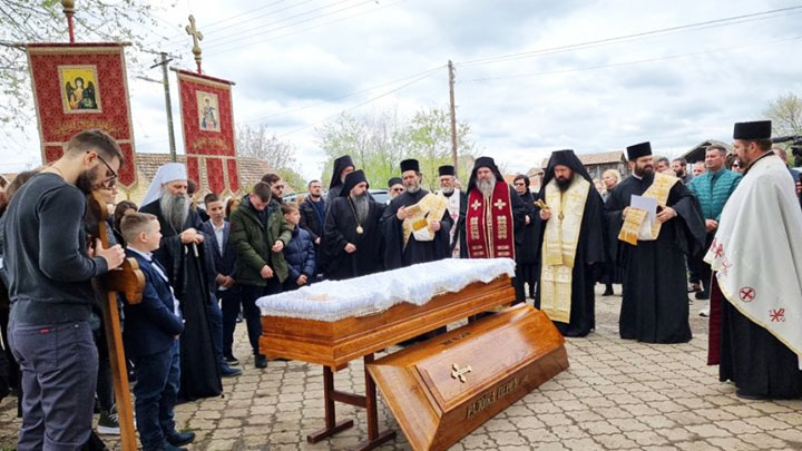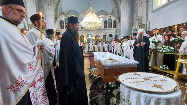 У молитвеном присуству Његове Светости Патријарха српског г. Порфирија опело је служио Његово Блаженство Архиепископ охридски и македонски г. Стефан из Македонске Православне Цркве, Охридске архијепископије уз саслужење Митрополита преспанско-пелагонијског Петра из Македонске Православне Цркве, Охридске архијепископије и преосвећене господе епископа: банатског Никарона, бачког Иринеја, врањског Пахомија, шумадијског Јована, зворничко-тузланског Фотија, аустријско-швајцарског Андреја, нишког Арсенија, далматинског Никодима, осечко-пољског и барањског Херувима, ваљевског Исихија, шабачког Јеротеја, полошко-кумановског Јоакима, ремезијанског Стефана, марчанског Саве, мохачког Дамаскина, хвостанског Алексеја, новобрдског Илариона, јегарског Нектарија, липљанског Доситеја и топличког Петра, архимандрита Данила, директор Патријаршијске управне канцеларије, архимандрита Нектарија, главног секретар Светог Архијерејског Синода уз свештенсто и монаштво.