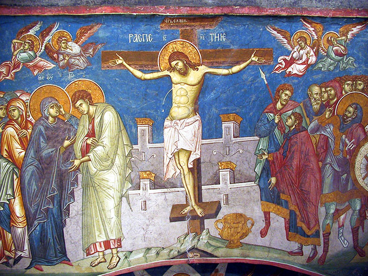 Као што му је Христос прорекао на Тајној вечери, пре петка ујутро апостол Петар се, у страху да и њега не затворе и казне, три пута одрекао свог Господа. Схвативши шта је урадио, одмах се покајао у горком плачу. Издајник Јуда, кад је сазнао да је Исус осуђен на смрт, мучен грижом савести обесио се. Пилат понуди јеврејском народу да им пусти једног затвореника, као што је то био обичај пред Пасху, али народ је изабрао разбојника и бунтовника Вараву, а за Христа је повикао скоро у глас: “Распни га! Распни га!” Војници вуку Исуса, шибају Га и ругају Му се, стављају Му на раме крст на коме ће бити разапет и воде Га, заједно са два разбојника која ће подврћи истој казни, на Голготу. Пред самим брдом Исус клону под тежином крста, па војници натерају Симона Киринејца да Му понесе крст. На Голготи војници разапињу Христа, а Њему са једне и друге стране – два разбојника. Изнад главе Христове на крст су прикуцали таблицу са натписом: “Исус Назарећанин, цар јудејски”. Близу крста стоје апостол Јован, Богородица, Марија Клеопова, Марија Магдалина и Саломија, мајка синова Заведејевих. Под крстом војници деле коцком Христове хаљине, као што је проречено у писму, а док се један разбојник руга разапетом Христу други Га моли да га помене у царству Своме. У тренутку кад је Христос у мукама умро на крсту, над земљом је била тама, завеса у Јерусалимском храму која је раздвајала светињу од светиње над светињама поцепала се на двоје, од горњег до доњег краја… Пошто су Му копљем пробили ребра да би се уверили да је мртав, војници по Пилатовој наредби допусте Јосифу из Ариматеје, Никодиму и осталим Исусовим пријатељима да скину Његово тело с крста, помажу Га мирисима и положе у гроб издубљен у стени. Положивши тело у гроб, они навале на врата од гроба тежак камен и разиђу се у великој тузи. Било је то вече уочи јеврејског празника Пасхе. Сваке године на Велики петак Црква оживљава у нама догађај Христовог страдања на крсту за људске грехове. Величанствена тишина Великог петка најављује већ извојевану победу у космичкој битки Богочовека против Сатане и смрти. Сатана је халапљиво прогутао мамац који ће уништити његову власт – Јагње Божије. Злим људима ништа није тако мрско и одвратно као добар човек. А уколико пред собом имају човека без икаквог греха, онда постају гори од звери, јер животиња убија и комада плен само да утоли глад, а човек то ради из најнижих побуда, да би уживао у туђим мукама.