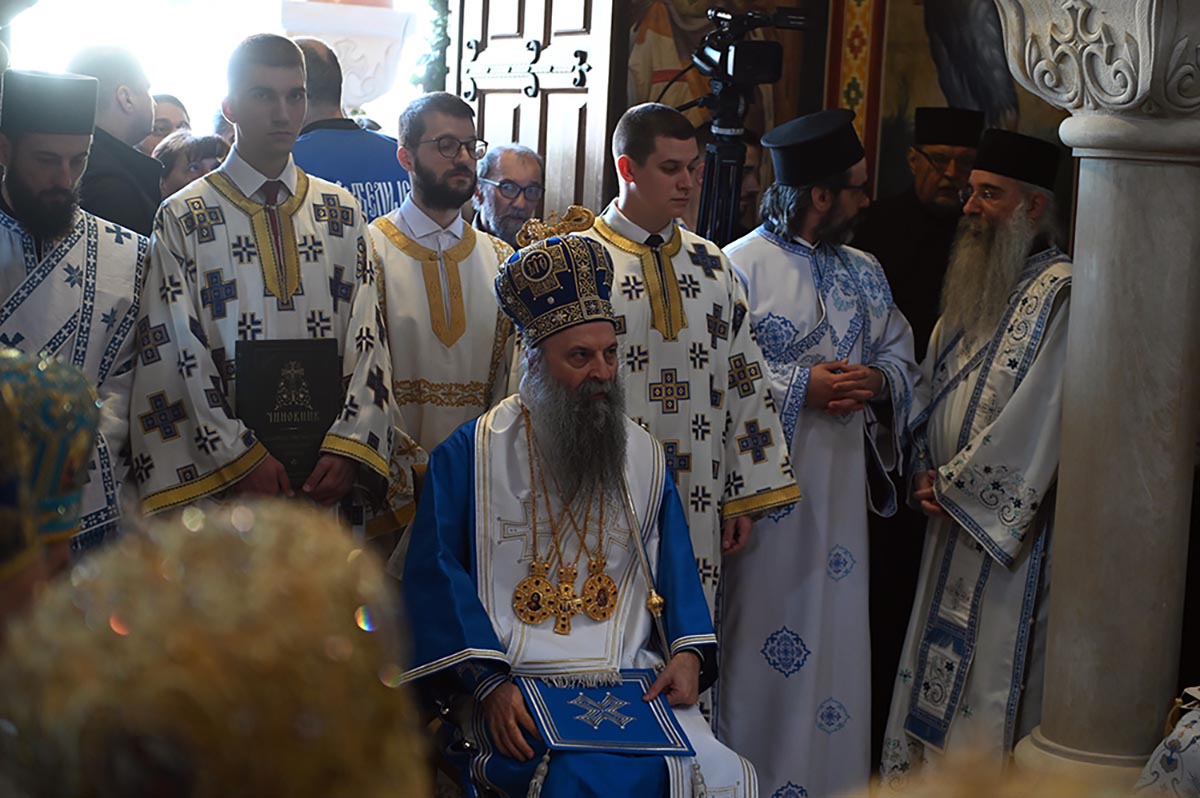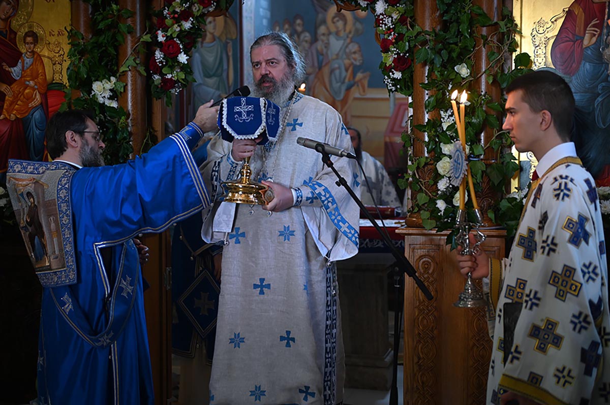 Светом архијерејском Литургијом је началствовао Његова Светост Патријарх српски г. Порфирије, уз саслуживање високопреосвећене и преосвећене господе архијереја берлинског и немачког Руске Заграничне Цркве Марка, врањског Пахомија, шумадијског Јована, браничевског Игнатија, рашко-призренског Теодосија, тимочког Илариона, нишког Арсенија, осечкопољског и барањског Херувима, шабачког Јеротеја, ремезијанског Стефана, топличког Петра и домаћина, Епископа ваљевског Исихија, као и свештеника и свештеномонаха из више епархија. Богослужење су појањем улепшали хор свештеника и богослова под управом протонамесника Бранка Чолића.