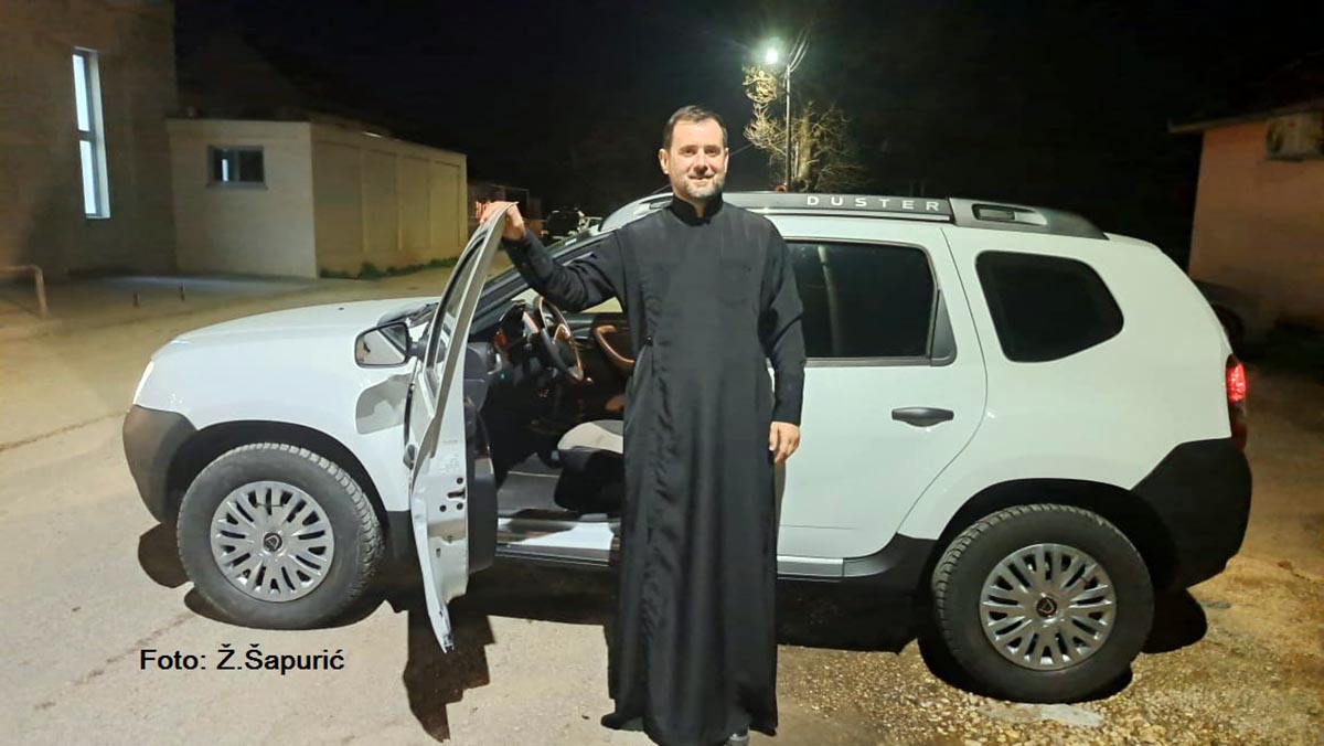 Више од 120 километара у пречнику „покрива“ парохију свештеник Раденко Копривца и 13 година обилази сваку кућу по киши, снијегу, леду. ”То сам до сада обављао са “голфом двојка” и могу вам рећ да је непревазиђен и да ме је одлично служио. Сродио сам се са овим народом и понашамо се као једна породица. То показујете и овим вашим великим прегнућем и показали сте љубав велику према мени као вашем пароху, а ево данас мораћу да се потрудим да вашу љубав према мени оправдам. Остаје ми да вам се захвалим да вам Бог врати сваким добром на ваш труд, вашу љубав и на овај прилог који сте показали мени као вашем пароху. Нека би Бог вратио вашим породицама и вама вишеструко на овој жртви љубави, на овоме дару великоме”, рекао је отац Раденко.