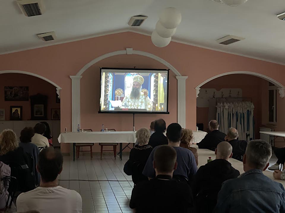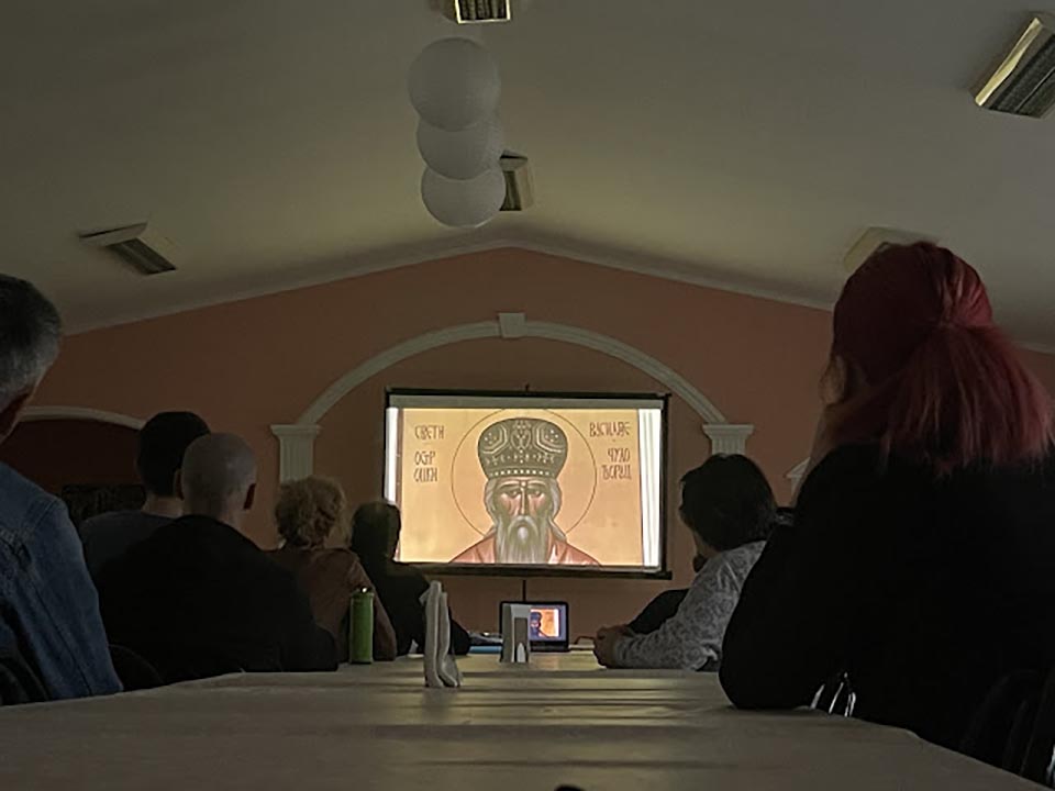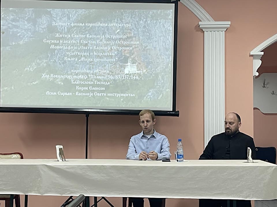После приказивања филмског остварења које је настало са благословом Његове Светости Патријарха српског г. Порфирија, а у продукцији Телевизије Храм, Архиепископије београдско-карловачке, сабранима су се надахнутим речима обратили ђакон др Никола Лукић, доцент катедре за Литургику Православног богословског Факултета Универзитета у Београду, и катихета Бранислав Илић, аутор филма.