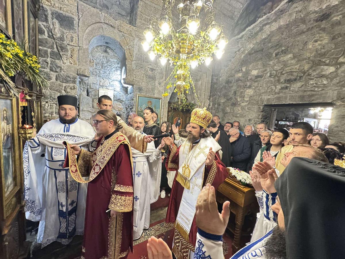 Његово Преосвештенство Епископ диоклијски Г. Пајсије служио је, на празник Уласка Господа Исуса Христа у Јерусалим – Цвијети, у недељу 13. априла 2025. године, Свету Архијерејску Литгургију у цркви Светих апостола Петра и Павла у Бијелом Пољу.