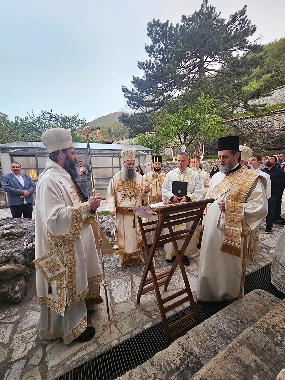 - Нека би Господ дао да тако буде у читавом свету, у свету у којем су људи, баш зато што су отуђени од Бога или, да будемо конкретни, баш због тога што смо отуђени од Бога, отуђени смо и далеки једни од других. Отуђени смо од читаве творевине Божје. И ево, Господ је дошао међу нас, али не само да је дошао него нам даровао живот вечни, узео нас у своје наручје, ставио на своје груди и собом унео у Царство своје, у Царство Оца и Сина и Светог Духа. И зато гледајући очима тог Царства Васкрслог Господа, гледајући очима Његовим, слушајући ушима Његовим, мислећи срцем Његовим, знаћемо да је Он Господ наш, да је победио смрт, тог нашег вечног непријатеља, али да је, победивши тог вечног непријатеља који се зове смрт, победио још једног веома великог нашег непријатеља који се зове себичност, егоизам, самољубље, из кога онда проистиче правило да видимо другог као непријатеља, као вука, а у Његовом наручју, у Његовом Васкрсењу, постајући Његови, постајемо онда и браћа и сестре међу собом и сви нам постају ближњи. Нека сте благословени! Нека Бог да сваком од нас добро здравље и мир да бисмо увек славили Њега, једног Господа нашег Исуса Христа, радосним поздравом: Христос Васкрсе!