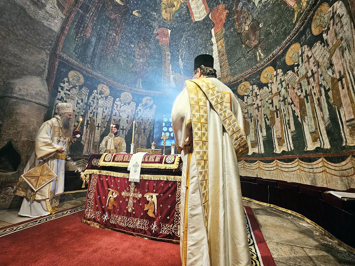 Његова Светост Патријарх српски г. Порфирије је началствовао 20. априла 2025. године, на празник Васкрсења Господа и Спаса нашег Исуса Христа, светом Литургијом у Пећкој Патријаршији.