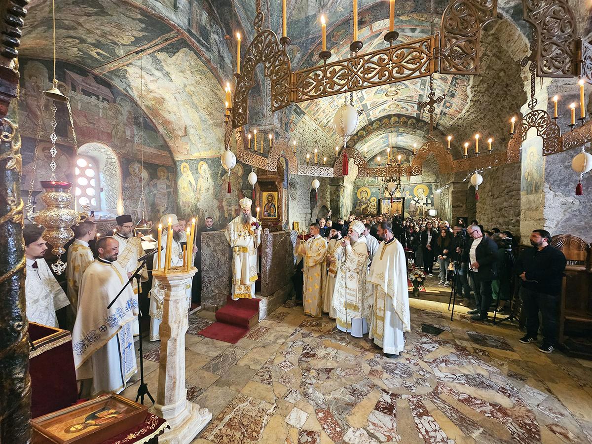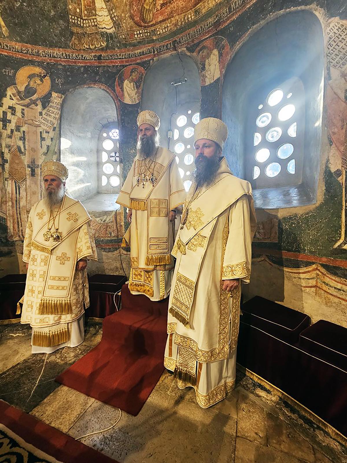 Уз молитвено учешће игуманије Харитине и пећког сестринства, предстојатељу Српске Праводславне Цркве су саслуживали преосвећена господа викарни епископи новобрдски Иларион и јенопољски Никон, као и чланови Патријархве свештене пратње: архимандрит Данило, директор Патријаршијске управне канцеларије; протођакон др Драган Радић, ђакон Василије Перић и ипођакон Владимир Јелић.