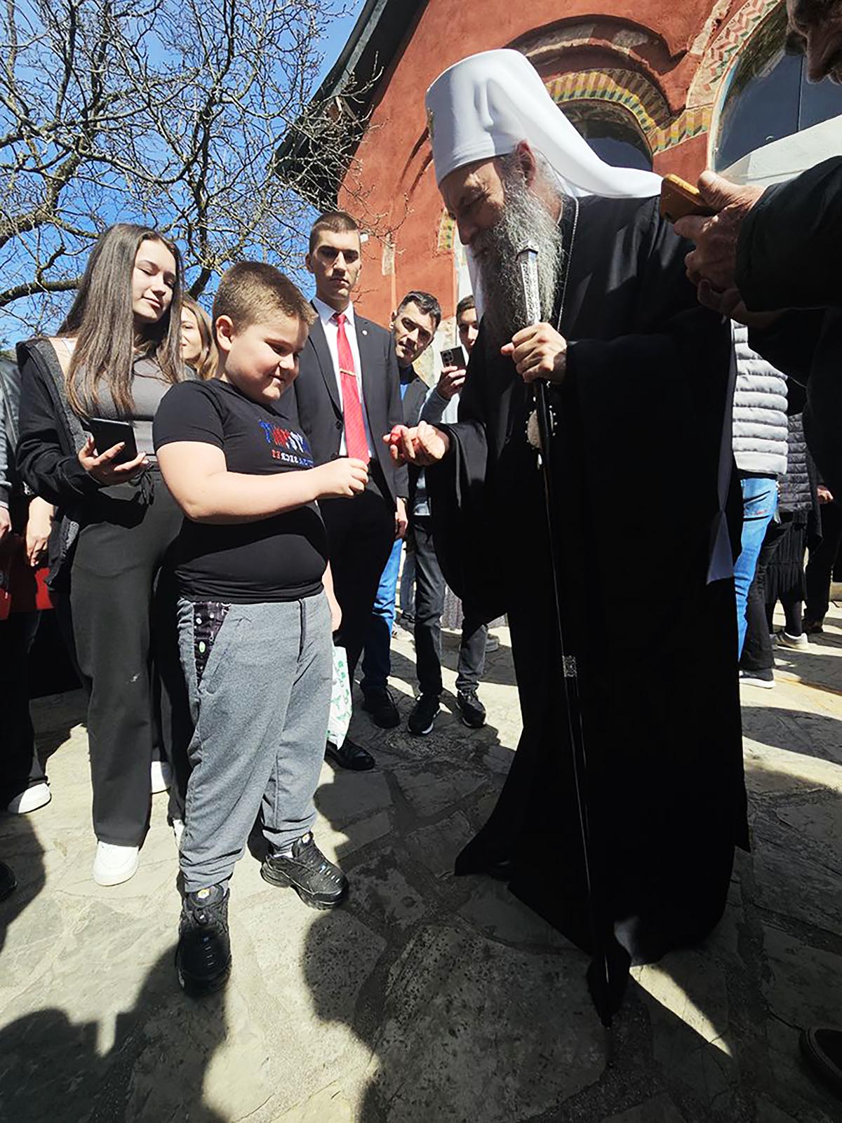 После свете Литургије, Његова Светост Патријарх српски г. Порфирије је поделио стотину годишњих стипендија ученицима и студентима са Косова и Метохије из фонда Задужбине Симе А. Игуманова.