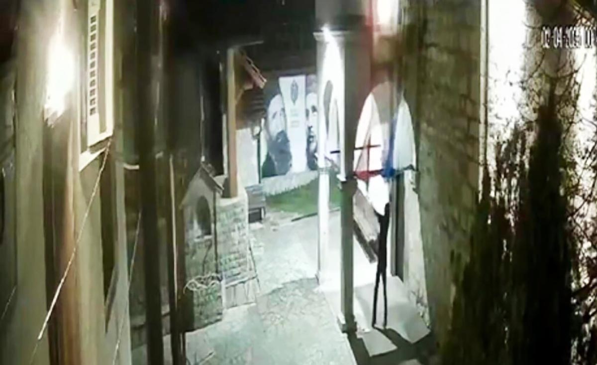 Безбедносне камере јасно су забележиле непознато лице са фантомком на глави које је око 00:36 часова пришло храму, а затим у 00:45 часова ушло у црквену порту, где је починилац поцепао званичну заставу Српске Православне Цркве са звоника храма.