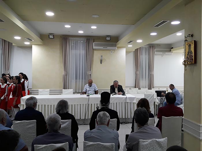 Претпразништво великог празника Успенија Пресвете Богородице сабранима је, у име Црквене Општине Никшић, честитао протојереј Остоја Кнежевић, поздрављајући Епископа будимљанско-никшићког Г. Јоаникија, публику и учеснике вечери. Он је навео да је, више од десет година, традиција да у црквено-народном Успењском сабору, поводом славе манастира Пива, гостују угледне личности из нашег народа, који произносе празничну бесједу, а, такође, у Никшићу имају своје ауторско вече. На тај начин никшићкој публици се пружа прилика да боље упозна њихово дјело, на чему је о. Остоја, нарочито, захвалио домаћину и водитељу програма проф. др Јовану Делићу.