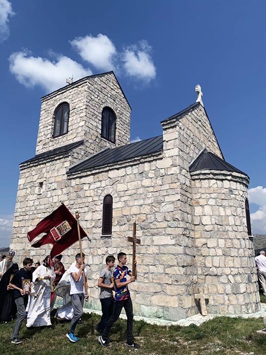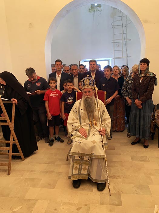 Његово Преосвештенство Епископ будимљанско-никшићки Г. Јоаникије служио је, у суботу 31. августа 2019, Свету Архијерејску Литургију, у цркви Светог архиђакона Стефана на Крњој Јели у Ускоцима, поводом храмовне славе ове новообновљене светиње.