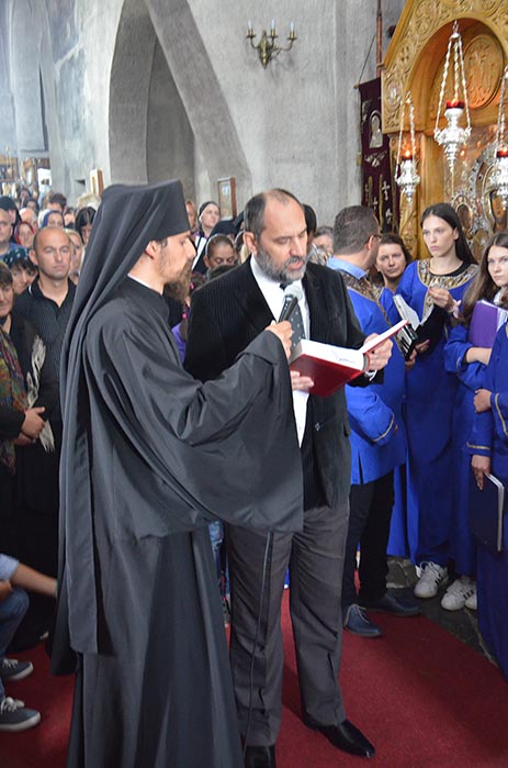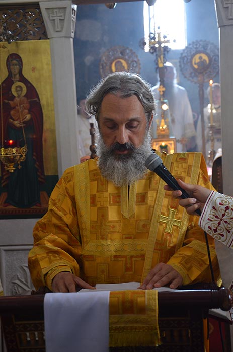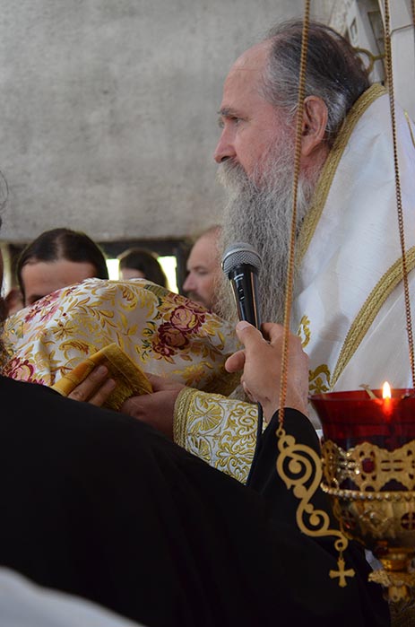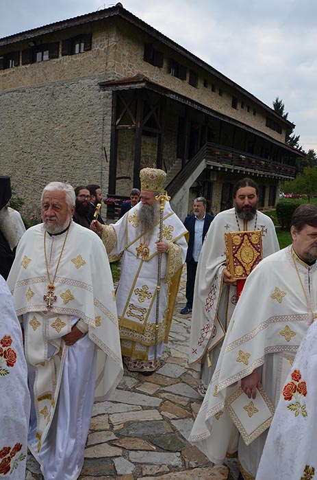 „Благодаримо свима који су нам дошли на ово славље, а имамо госте са више страна. Нарочито нам је драго што је данас са нама о. Андреј из Петрограда, који нам доноси благослов петроградских светиња РПЦ. Данас нам је овдје и игуман сопоћански о. Теоктист, родом из ових крајева, из мученичке Велике, отац Јован, који је свештеник у Крушевцу, а родом је из Мојковца, наш о. Никола Гачевић, који служи у Атини, а он је из Затона, наш ђакон Никола Трифуновић, који служи у РЗЦ у Паризу. Са нама су сестре монахиње са више страна и из Пећке патријаршије, наши добротвори, ктитори, покровитељи ове светиње и Епископије“, рекао је Владика.