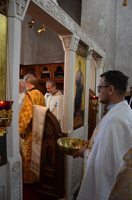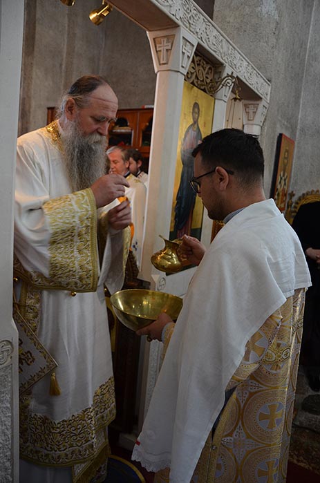 Свету Архијерејску Литургију служио је Његово Преосвештенство Епископ будимљанско-никшићки Г. Јоаникије уз саслужење свештенства и свештеномонаштва из Митрополије црногорско-приморске и више Епархија, као и гостујућег свештеника из Руске Православне Цркве.