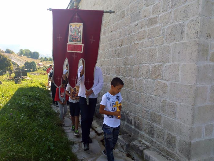 Током свете службе Божје вјерни народ, који је постио Госпојински пост, приступио је и причестио се Светим Тајнама Тијела и Крви Христове.