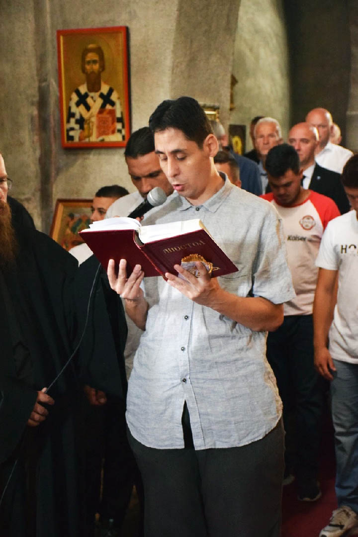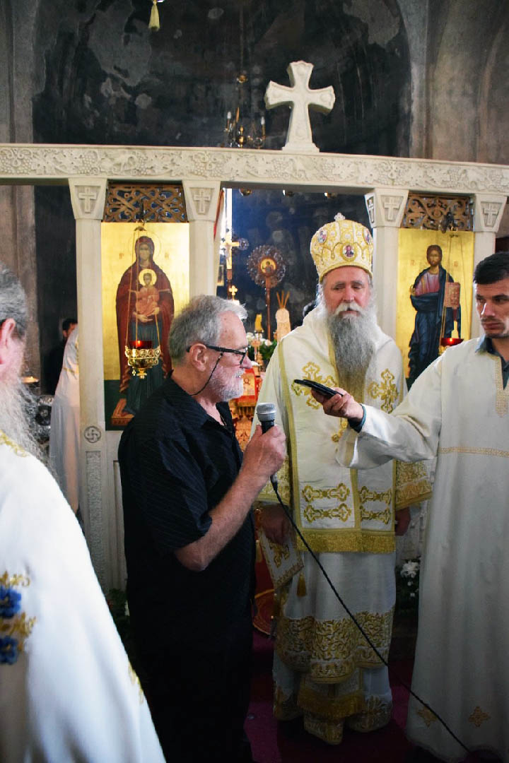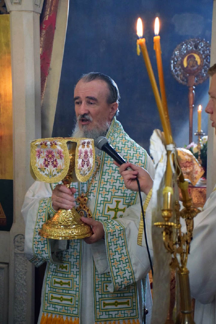 “И благодаримо Богу на свему, а наше благодарење врхуни у овој Светој служби. Благодаримо онако како ми можемо, од срца, од ума, од језика, од цијелога нашега бића приносећи му скромне дарове.од нашега труда, хљеб и вино. А Он тај хљеб и вино претвара у небески хљеб и у небеско пиће који постају извор вјечнога и непролазнога живота. И даје нам самога себе преко освећенога хљеба и вина. И ми се сједињујемо с Њиме и благодаримо и славимо и пјевамо и радујемо се новом животу”, рекао је он.