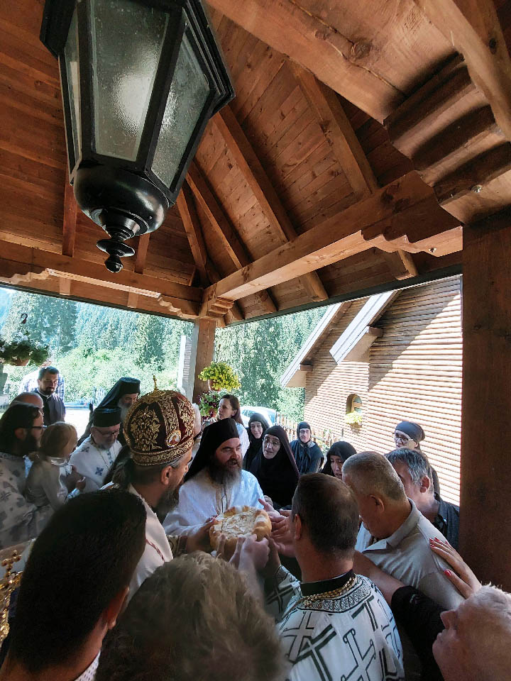 Заједничарење је настављено уз трпезу братске љубави. Сабрани су честитали славу игуману о. Владиславу (Цветковићу).