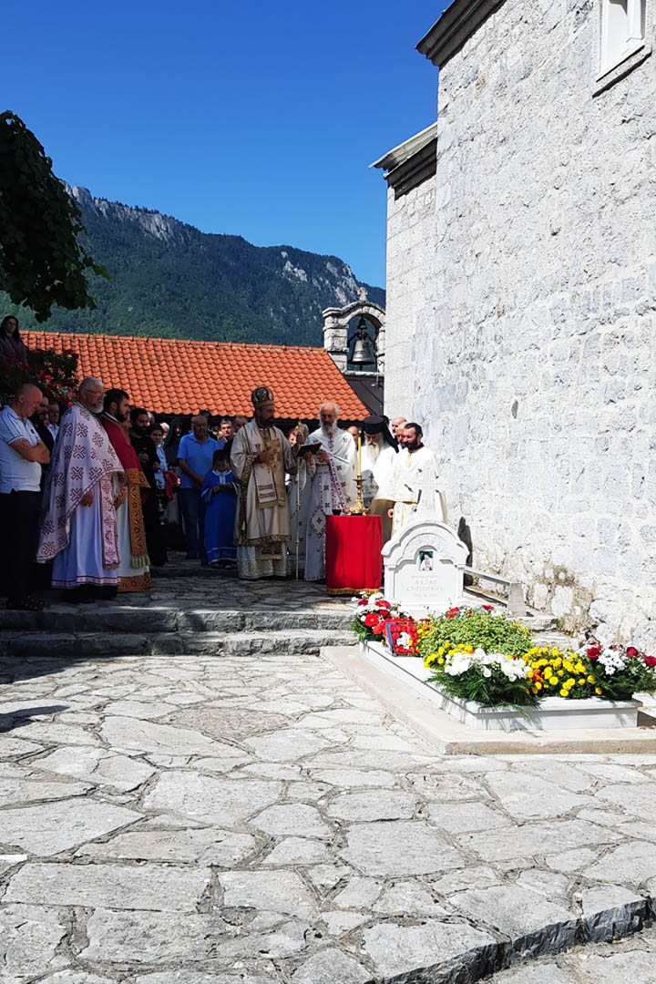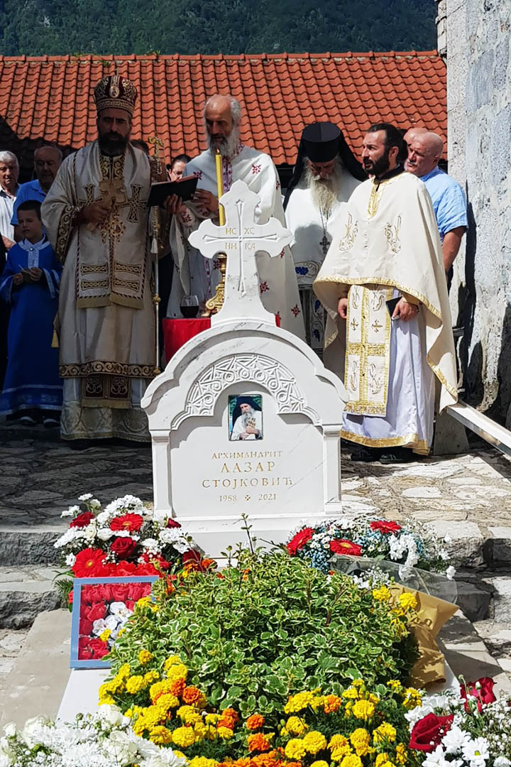 „То знамо јер свако ко је њему био близак, ко га је познавао дотакао се мало те његове благодати која га је преобразила. Та благодат која је преобразила њега и његову душу, преображавала је камен и гору и ову светињу која је изгледала као рушевина, а добила је данас ову форму, облик и сјај. То је јасан знак и доказ да је о. Лазар био просвећен том небеском свјетолошћу. Господ нека упокоји његову душу у Царству небеском“, рекао је Владика Методије.