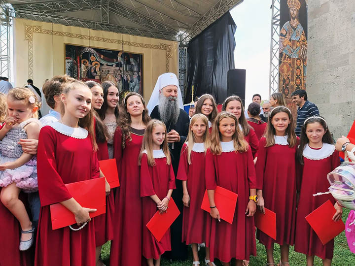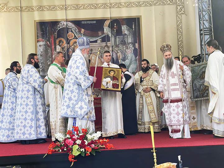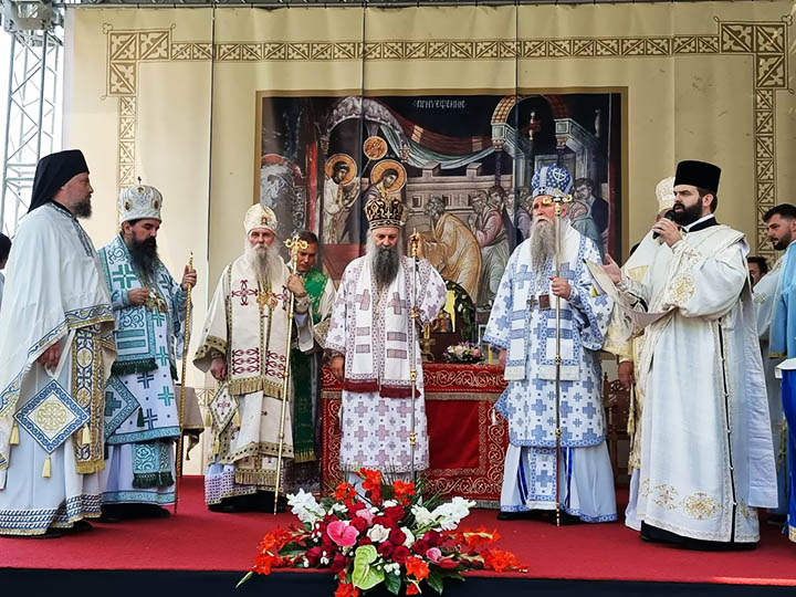 Нека сте благословени овде у граду Светог Стефана и Светог Саве. Нека сте благословени, браћо и сестре! Нека вам Господ подари мир, радости, љубав и јединство, јединство у доброј вери, у лепоти и радости, а не јединство у ономе што нас одваја од Бога. Тако јединствени загрлимо и загрлите сваког који долази у овај град без обзира како се Богу моли и ком народу припада. Загрлите све, јер само тако ћете осетити загрљај Пресвете Богородице и само тако ће Њен омофор бити мост који вас и све нас води из овог света у Царство Божје и, штавише, овај свет и ово сада и овде чини својим присуством иконом Царства Божјег и предукусом Царства Божјег. Славећи Пресвету Богородицу, славећи Светог Стефана, славећи Светог Саву и све свете из нашег рода, можемо да славимо и Једног у Тројици Бога, Оца и Сина и Светог Духа, сада и увек и у векове векова. Амин! Нека сте благословени. Срећан празник!