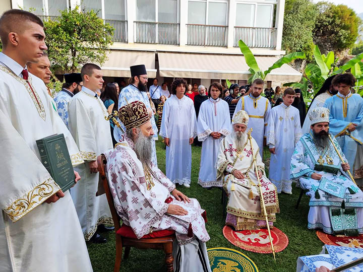 У име Оца и Сина и Светога Духа. Високопреосвећени брате и саслужитељу, данас сам неизмерно радостан и Богом благословен, јер Вашом љубављу и благословом, као и добротом градоначелника Херцег Новог, имам прилику да се заједно са свом браћом и сестрама окупљенима овде молим Богу на православни, хришћански начин на месту које је посвећено Светом Сави и у исто време у граду који је посвећен Светом Стефану, архиђакону и првомученику. Већ та два непоколебљива камена вере довољна су да, кад им се обратимо, наше срце, наш ум и наше биће буду испуњени лепотом, радошћу, љубављу, миром, свим оним што јесте дар Духа Светога, а даје се нама православним хришћанима у Цркви Његовој.