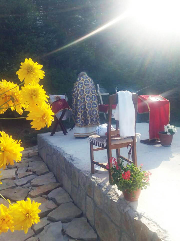 Горња Сомина - Јутрос, 26. августа, на оданије Преображења Господњег, служена је прва Литургија на темељима будуће зимске капеле посвећене чудотворној икони Мајке Божје Умекшавање злих срца.