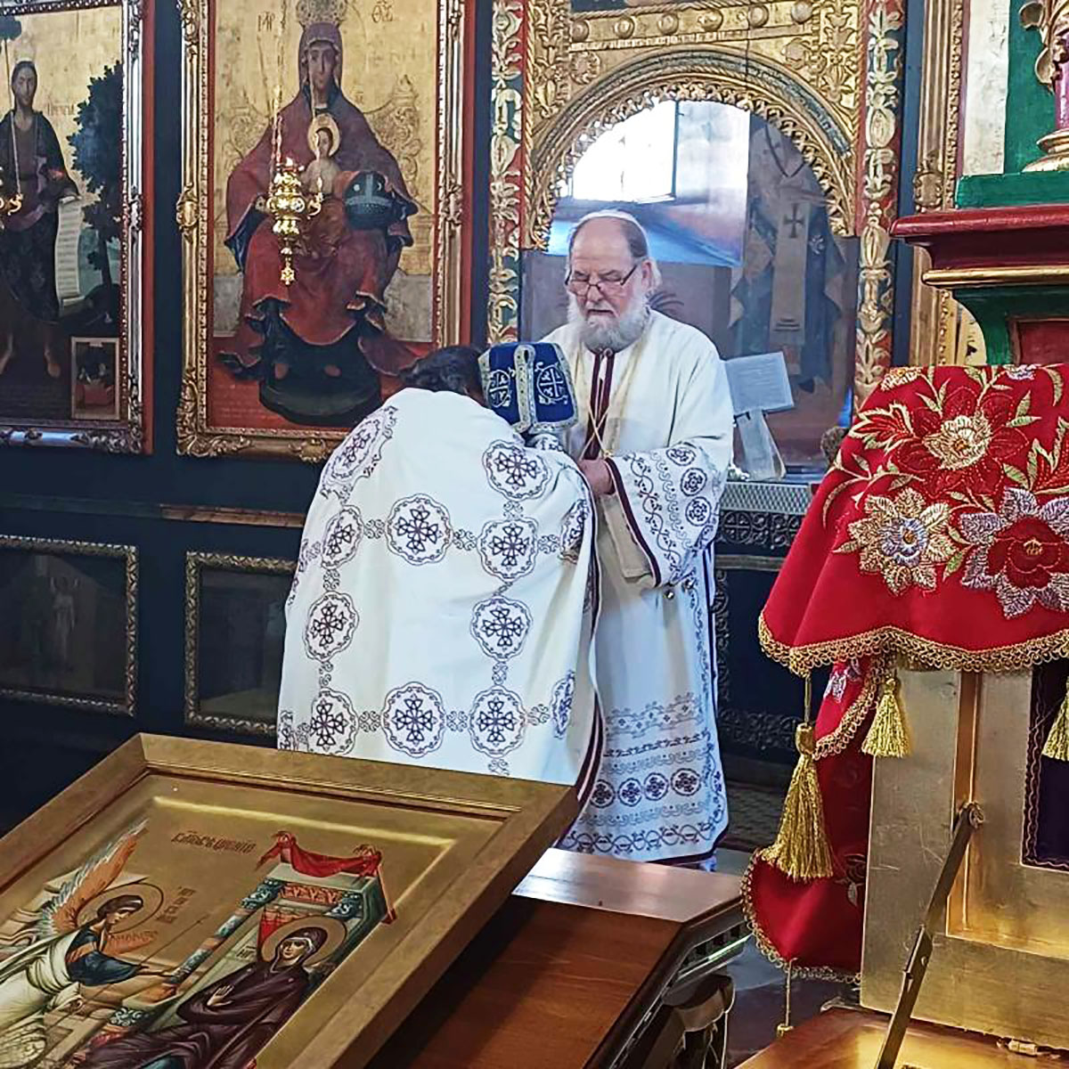 Епископ сремски је професорици Ани и свим члановима никшићког хора честитао хорску славу и посебно им заблагодарио на милозвучном појању које је допринело торжествености евхаристијског сабрања и овогодишњег крушедолског сабора крај моштију Преподобне Ангелине.